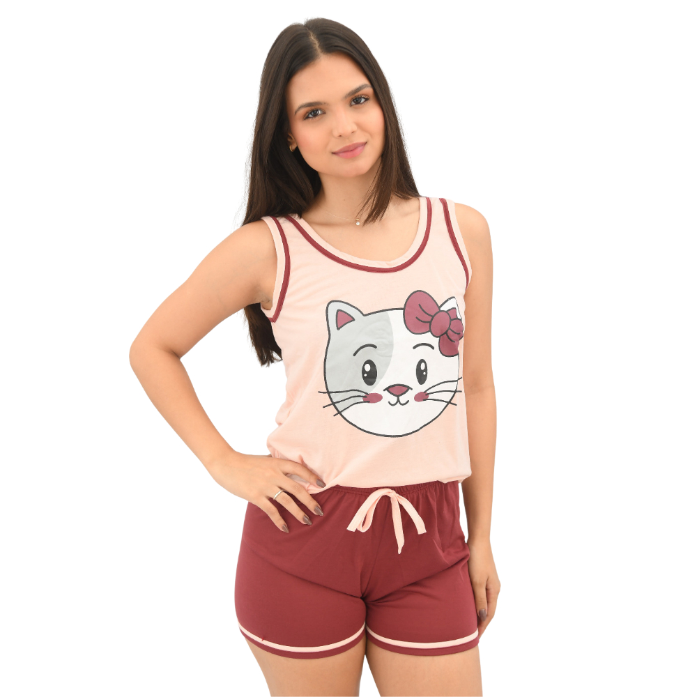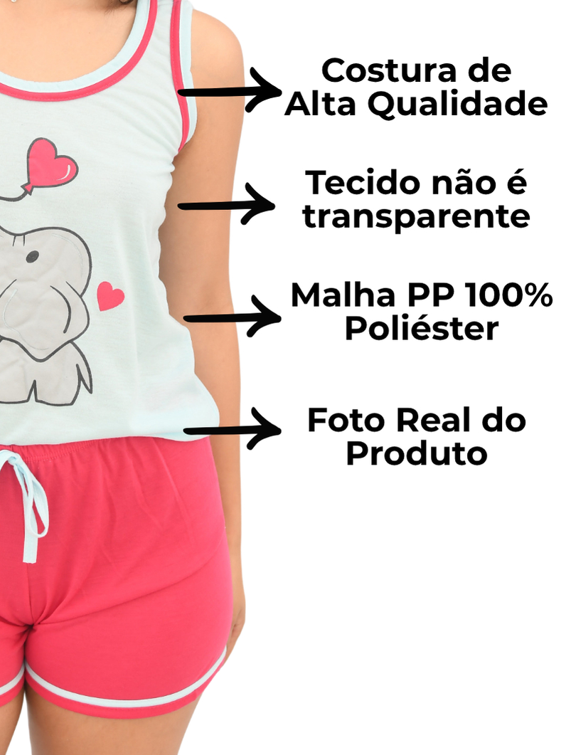 Pijama Baby Doll Regata Feminino Viés Duplo com Cadarço Confortável em Malha