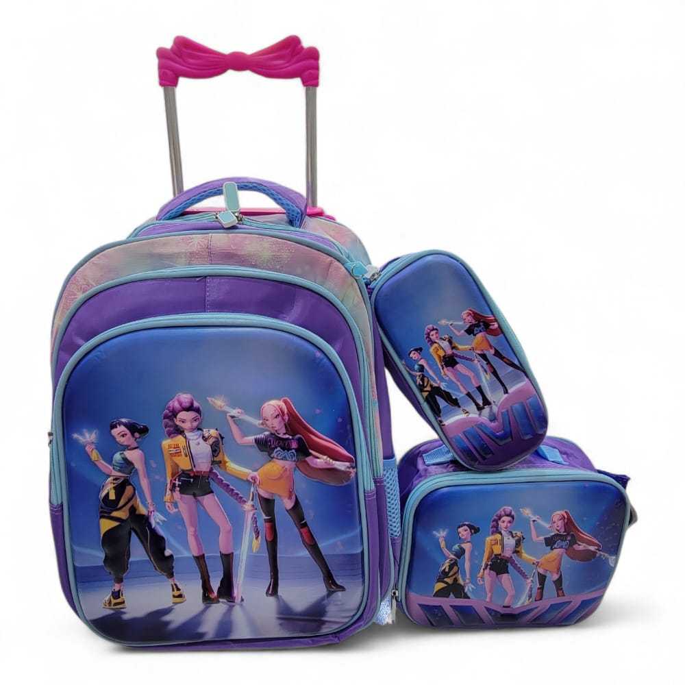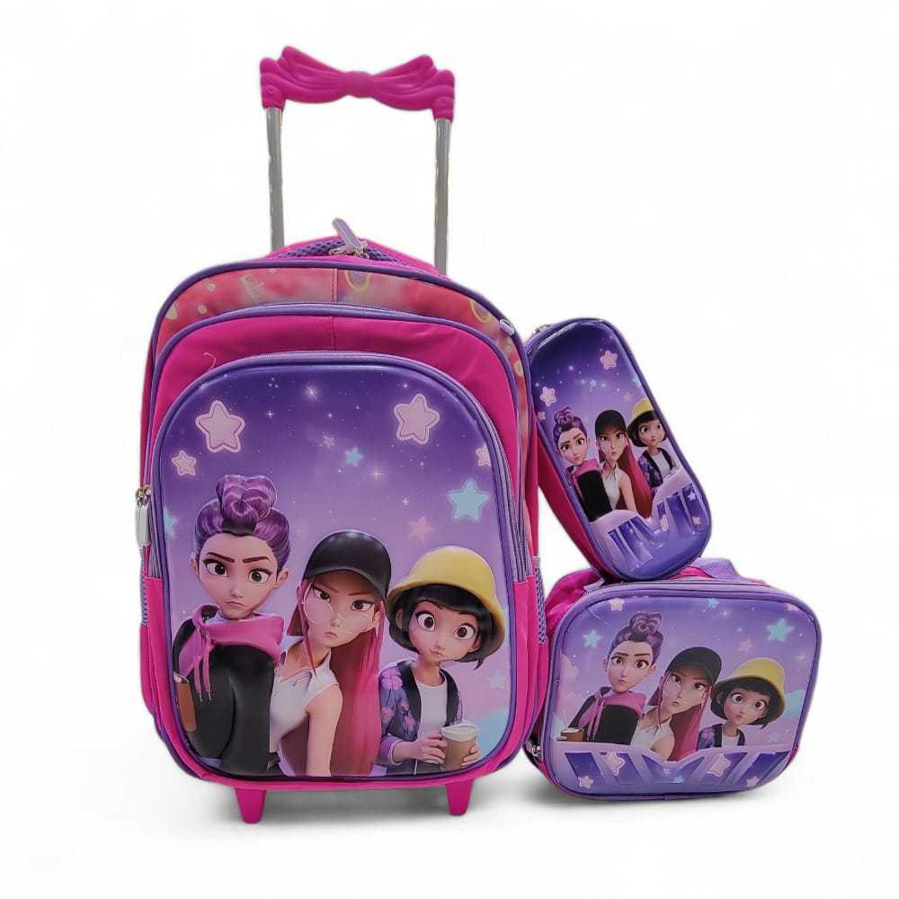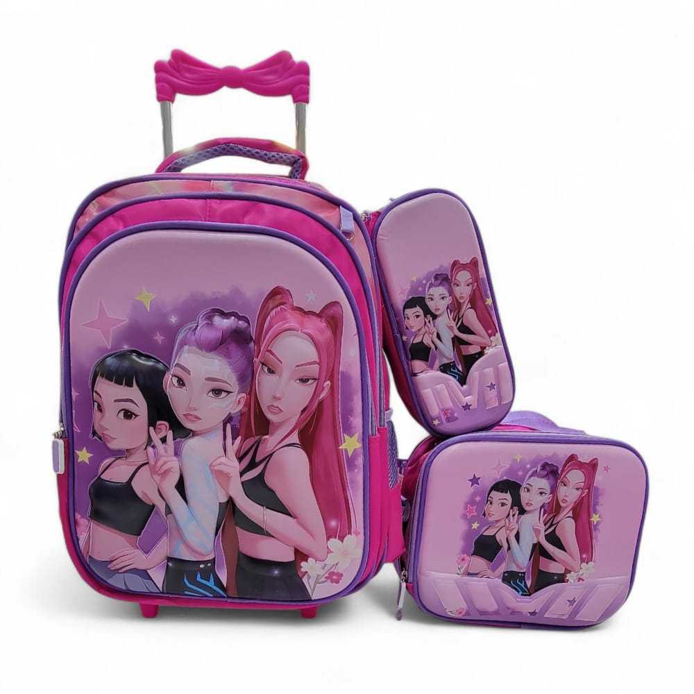 KIT MOCHILA inspiração HUNTRIX GUERREIRAS DO KPOP DESENHO 3D+ LANCHEIRA TÉRMICA + ESTOJO