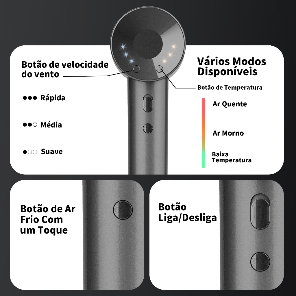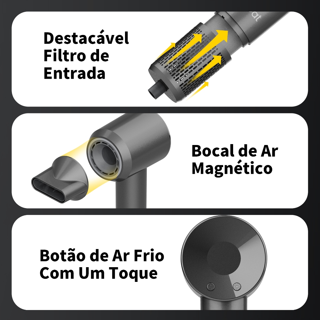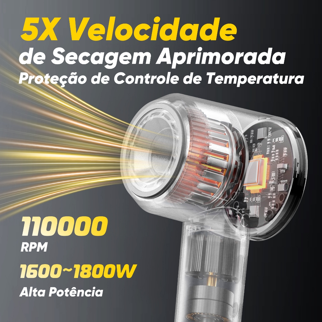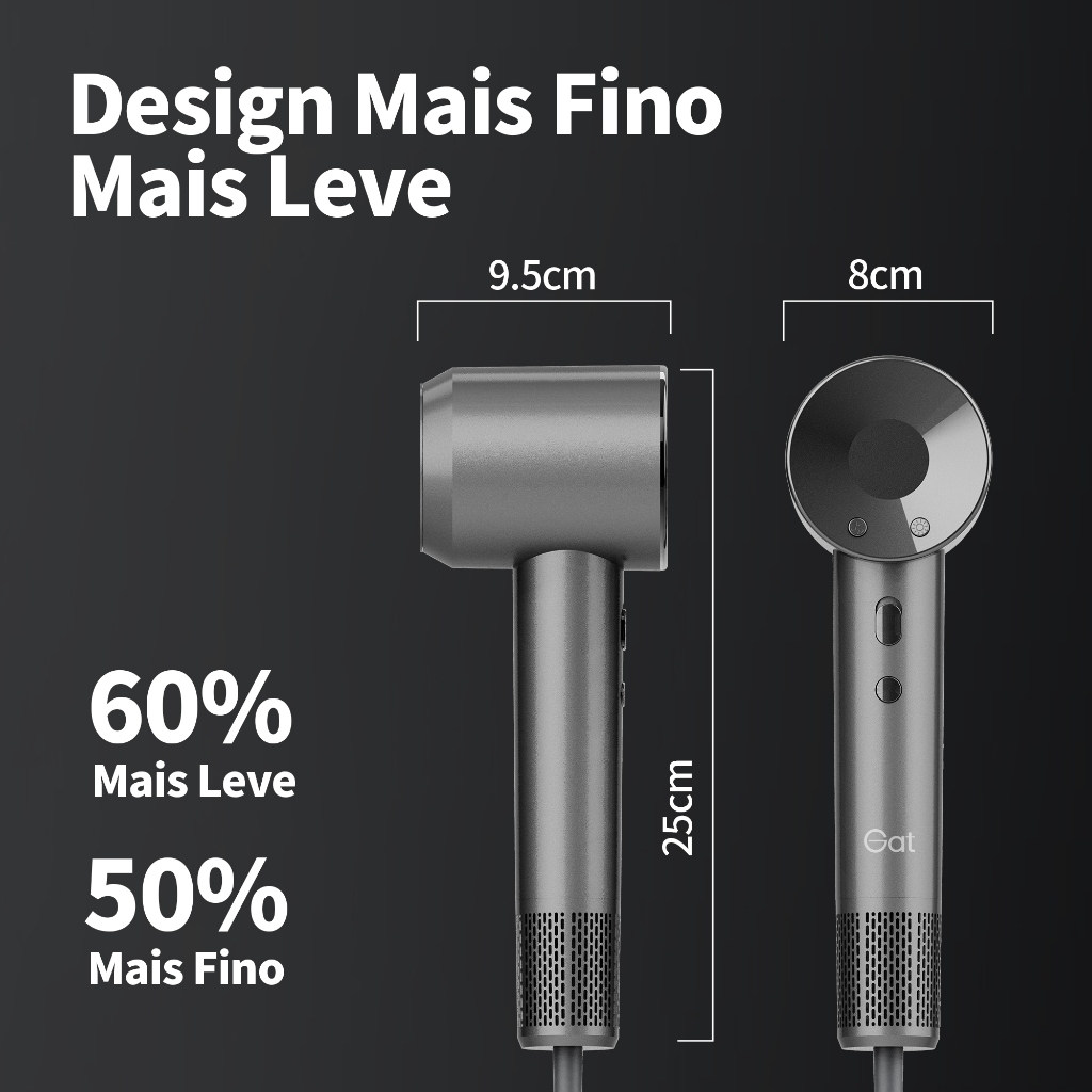 GAT Secador de Cabelo de Alta Velocidade, 1600W, Ajuste de Várias Velocidades (127V/220V)
