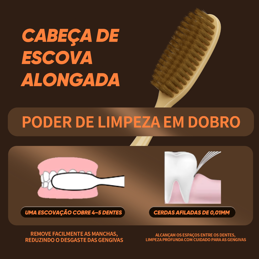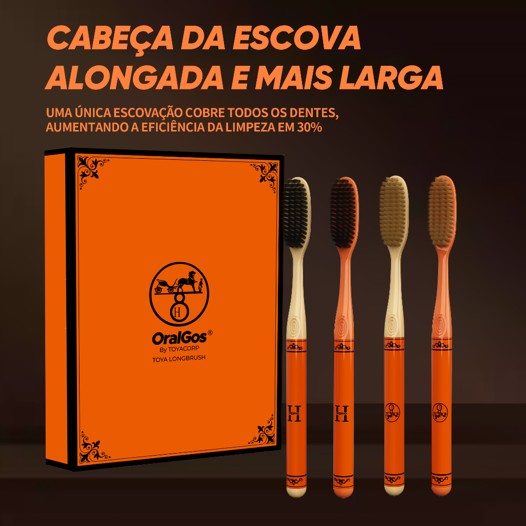 OralGos Cabeça Extra-Longa Escova de Dental, Cerdas Macias + Ideal p/ Gengivas Sensíveis, Kit 4un