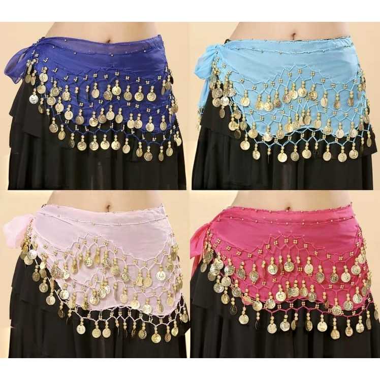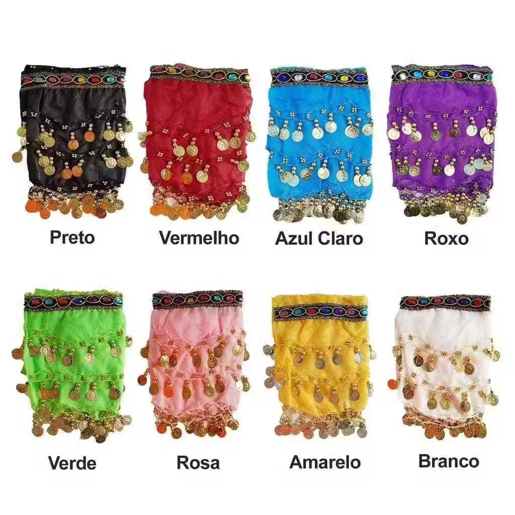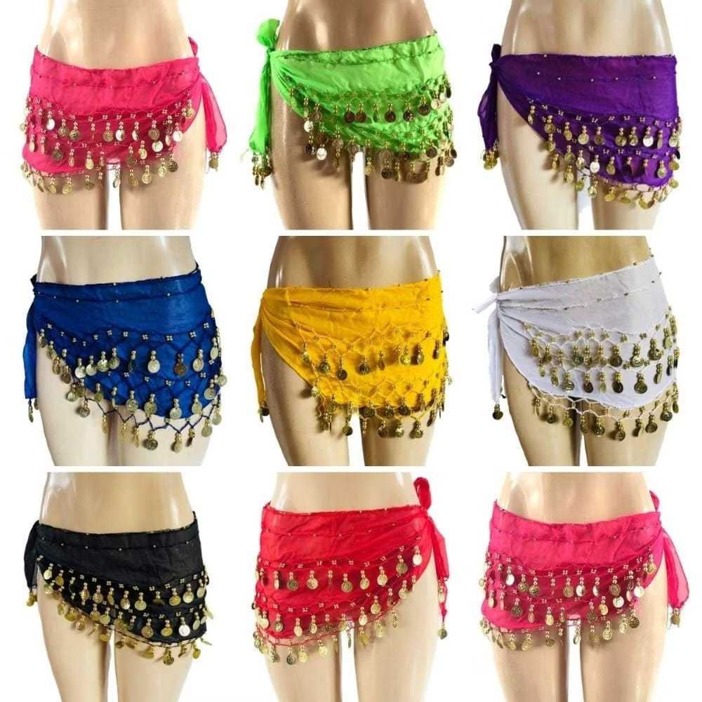 Lenço Dança Do Ventre Com Pedras e Moedas De Quadril Cores Sortidas