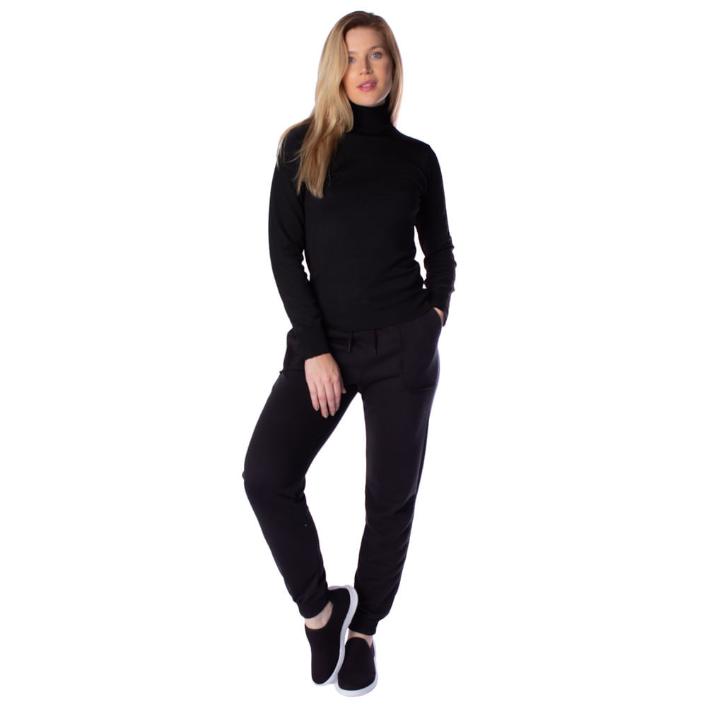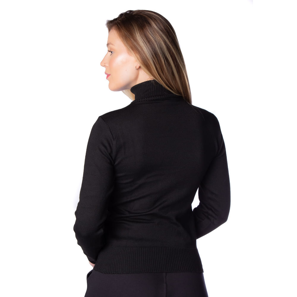 Blusa Básica Feminina Oliveira Malhas em Tricot com Gola Alta Preto