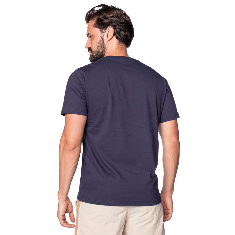 Camiseta Masculina Vida Marinha Manga Curta com Estampa Floral Marinho