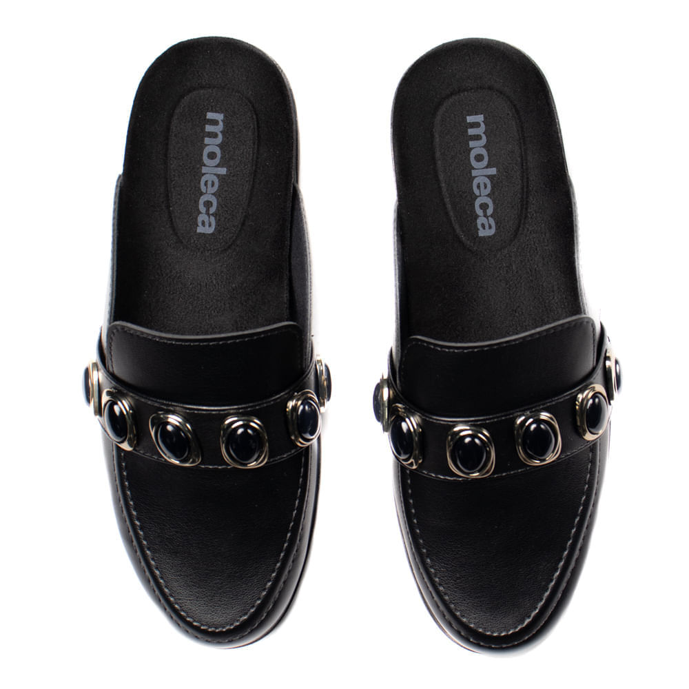 Mule Feminina Moleca Napa Aplicações Preto