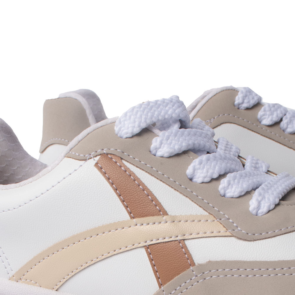 Tênis Feminino Beira Rio Recortes Branco/Bege