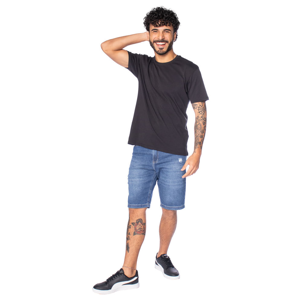 Bermuda Jeans Masculina Max Denim Puídos Azul