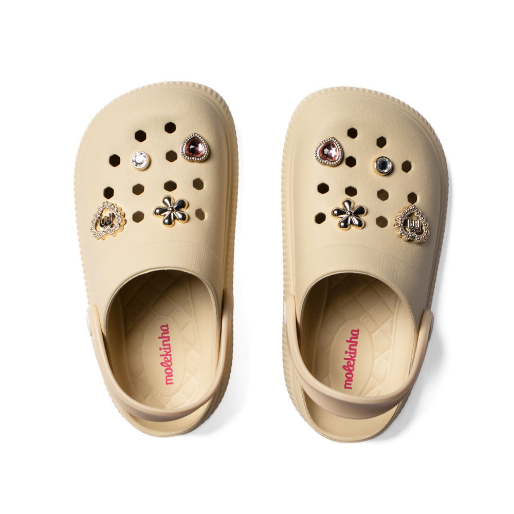Sandália Babuche Infantil Molekinha Pins Decorativos Creme