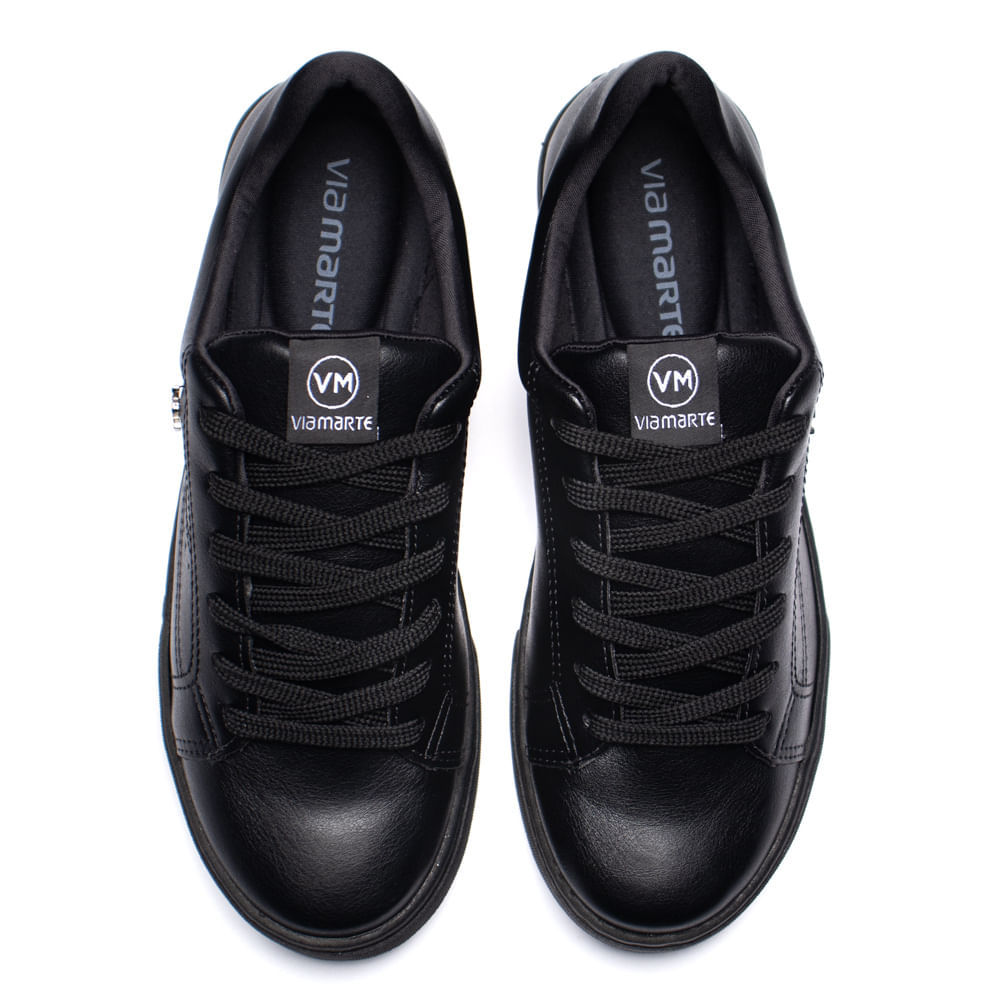 Tênis Feminino Via Marte Preto Casual em Napa Confortável com Cadarço