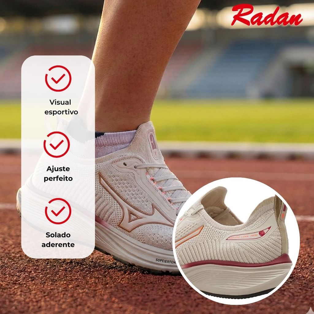Tênis Feminino Mizuno Cool Ride 3 SoftierFoam Off White/Rosa