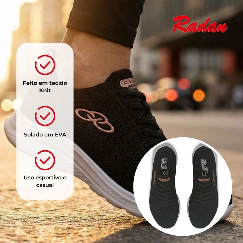 Tênis Feminino Olympikus 130G Ultraleve Hypersox Preto/Rose
