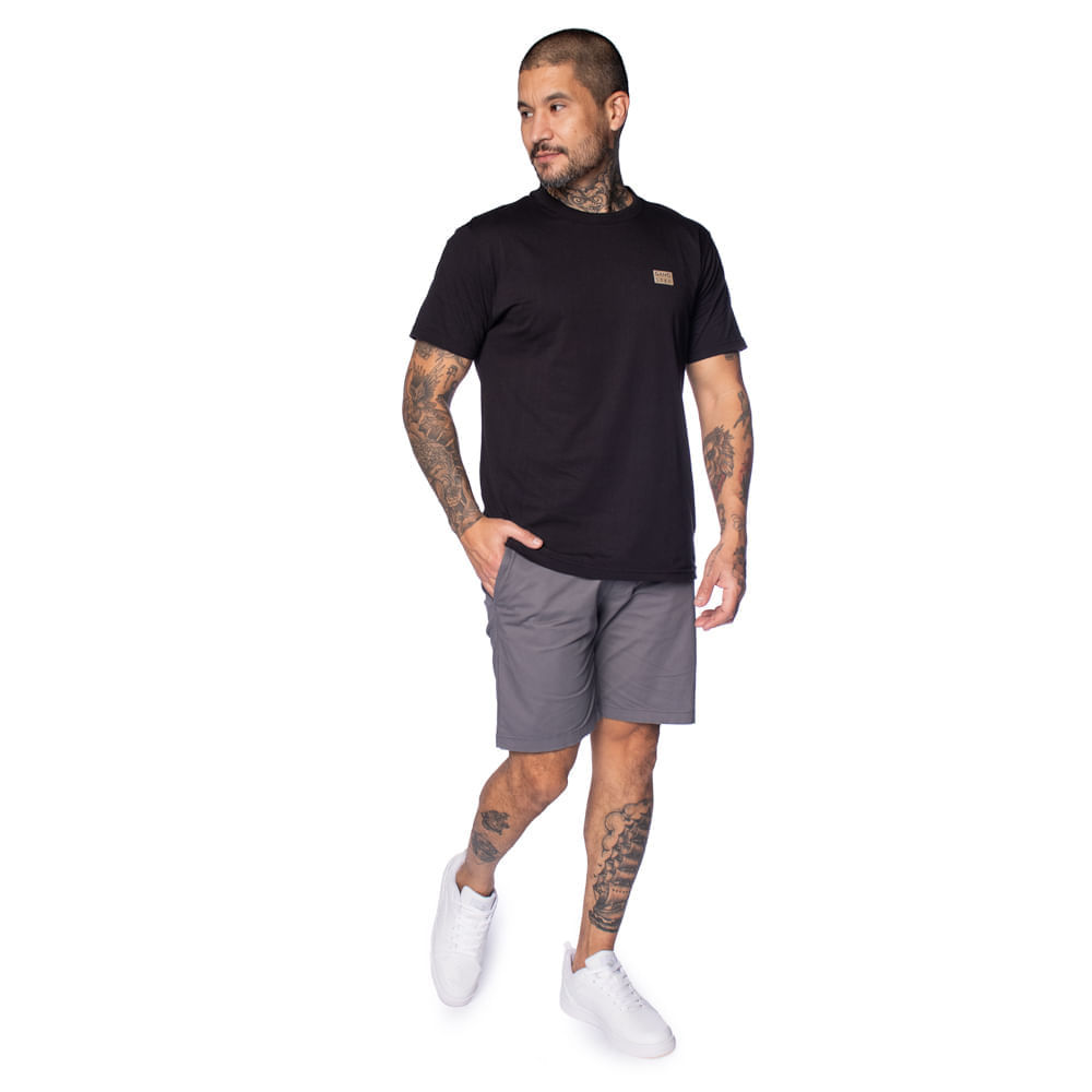 Camiseta Masculina Gangster Gola Canelada Preto