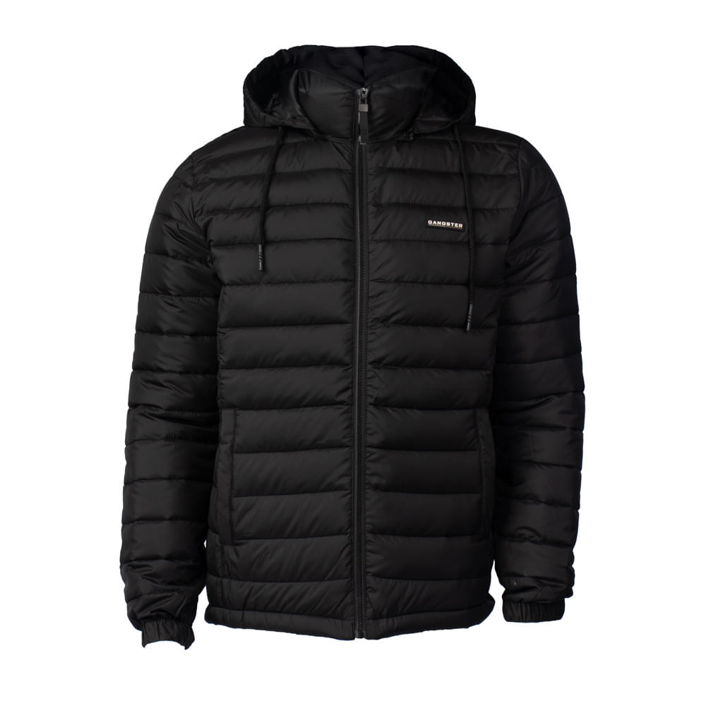 Jaqueta Masculina Gangster Puffer Capuz Removível Preto
