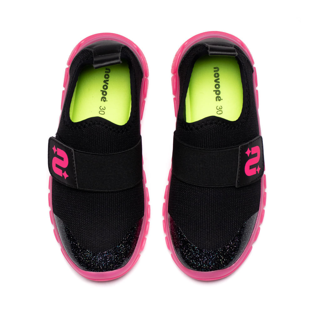 Tênis Infantil Novopé Soft Sport Slip-on Glitter Preto/Pink