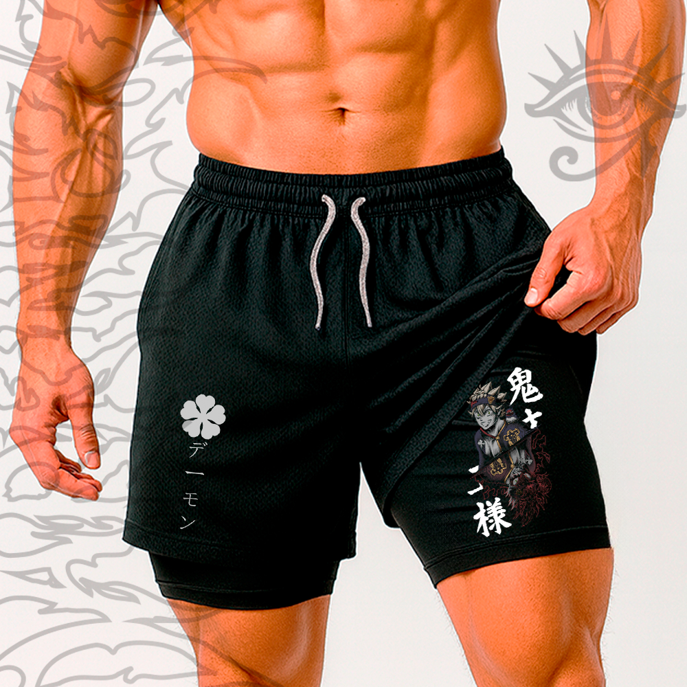Short Compressao 2 em 1 Fitness Black Clover Asta Liebe Mago Anime Gym Treino -Darknezz