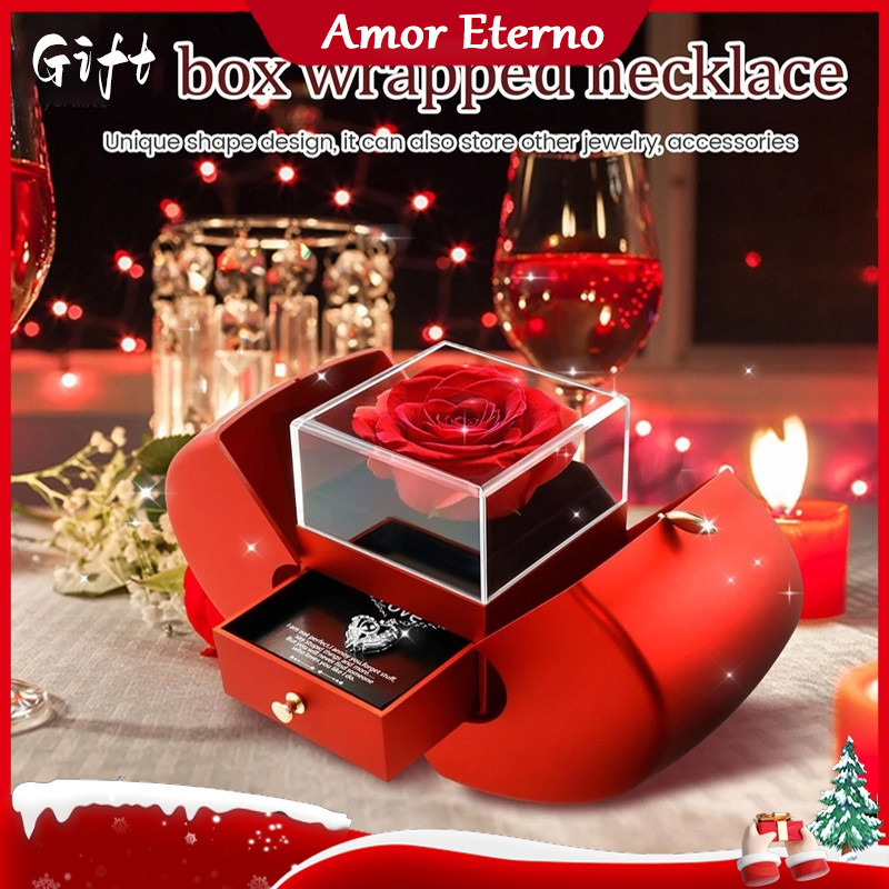 Colar De Prata Com Caixa De Presente Eternal Rose Para Namorada, Presente De Mãe