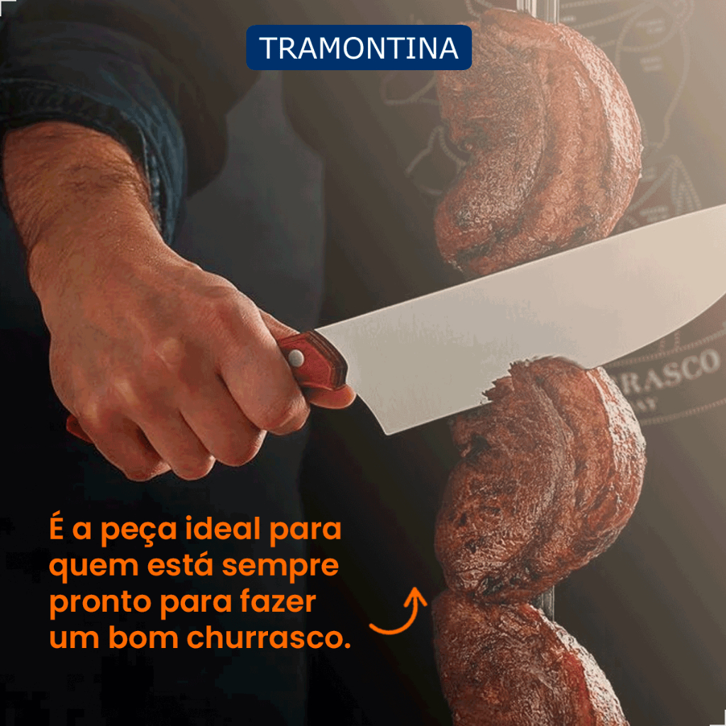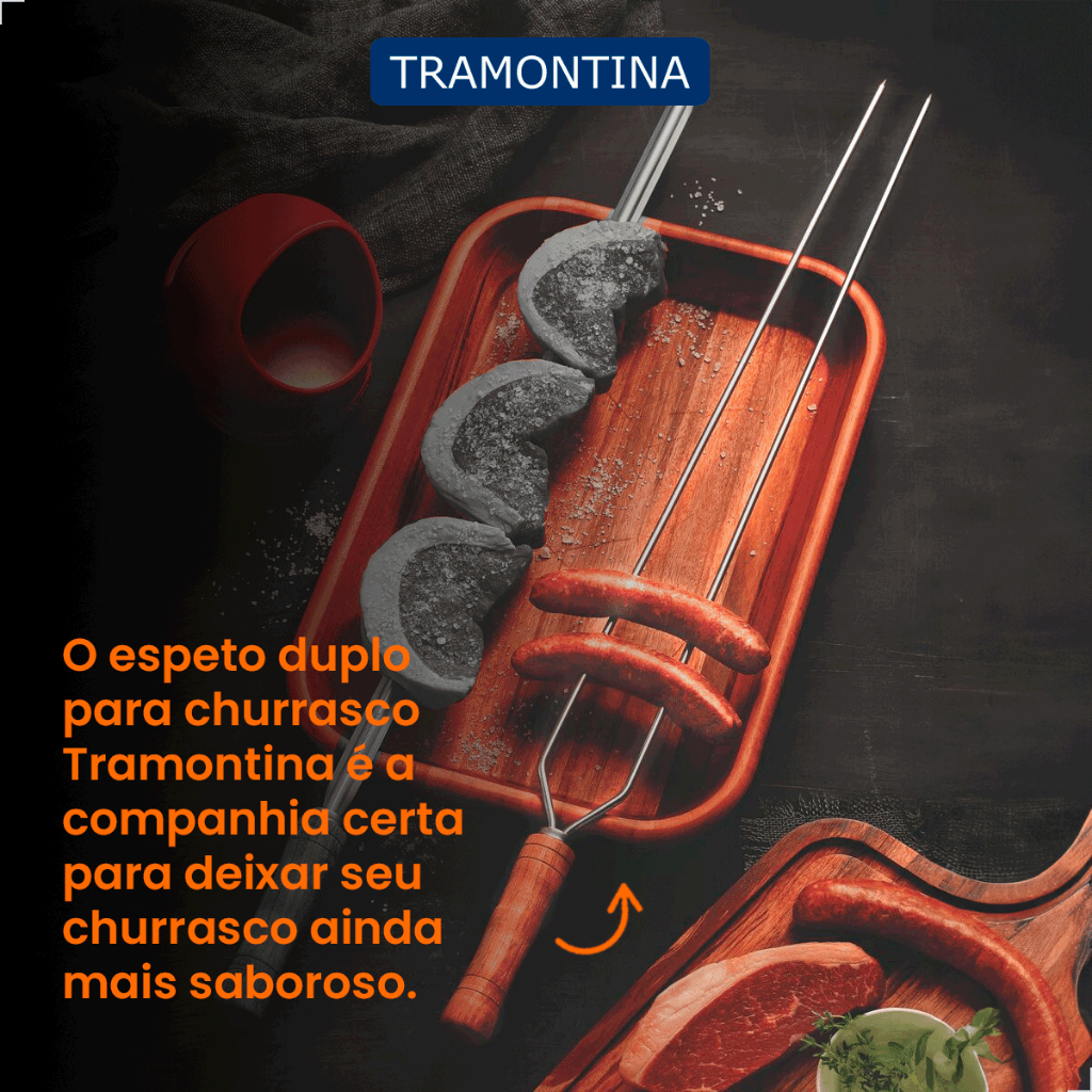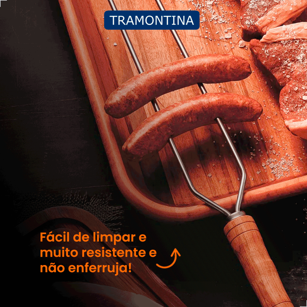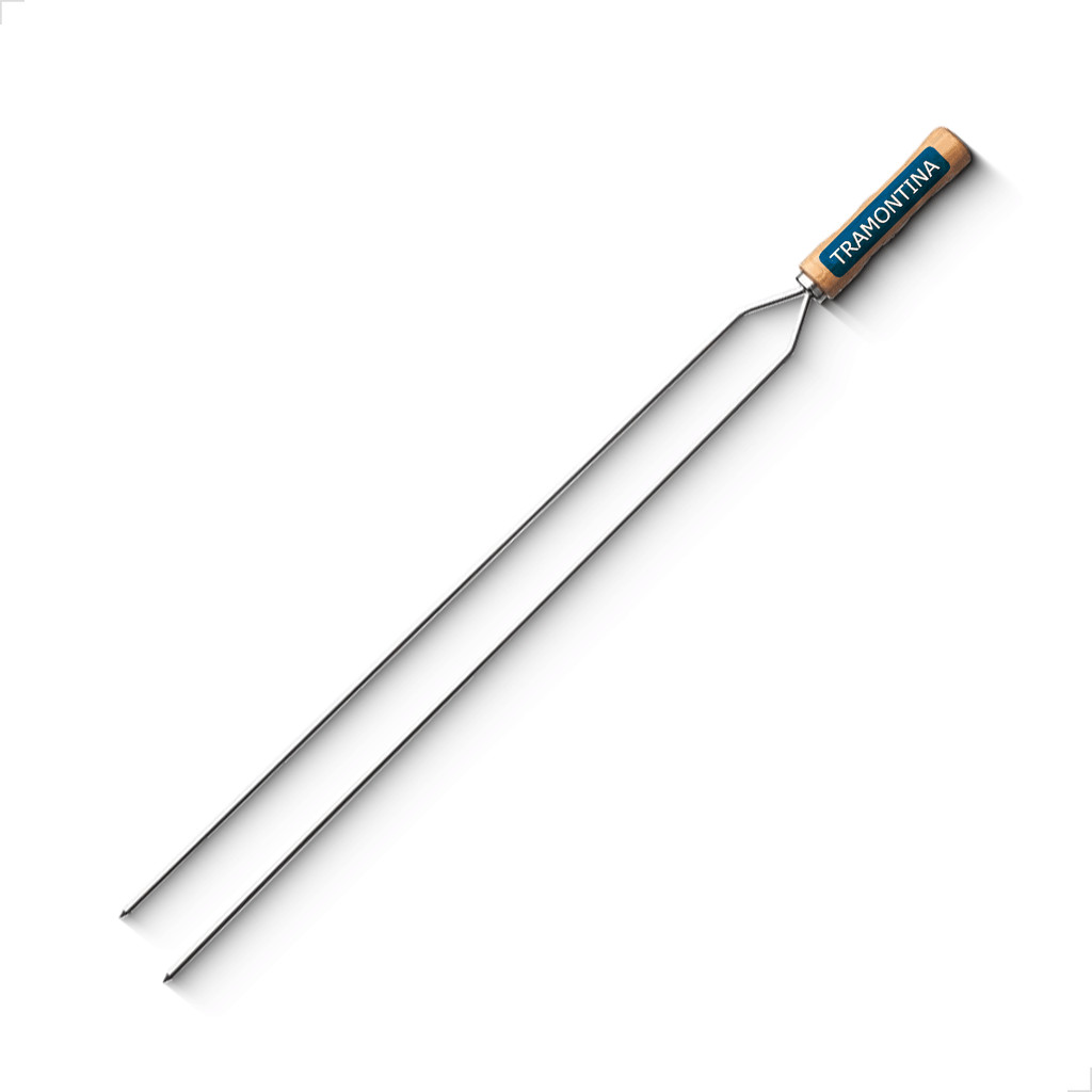 Espeto Duplo 85cm Churrasco Tramontina Lamina Aço Inox Cabo de Madeira Natural Resistente à ferrugem