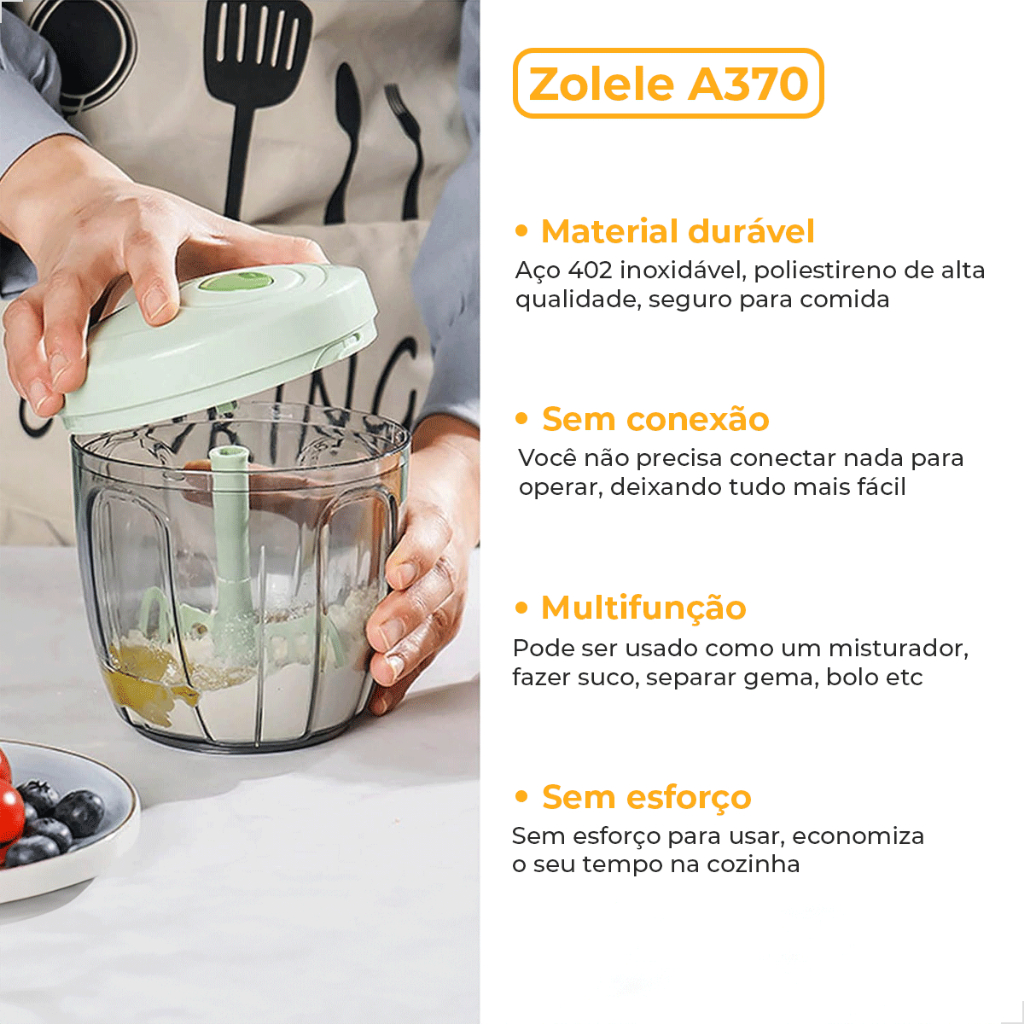 Processador Manual Picador Triturador Moedor Legumes Vegetais Frutas Carne Recipiente 900 ML ZOLELE