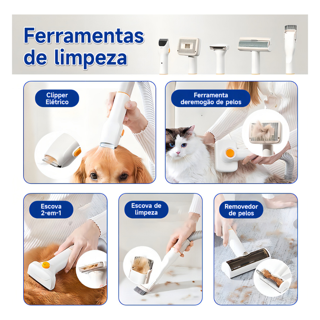 Máquina De Tosa Profissional Momovida Para Pets Cães E Gatos Escova Aspirador De Cabelo Kit 5 em 1