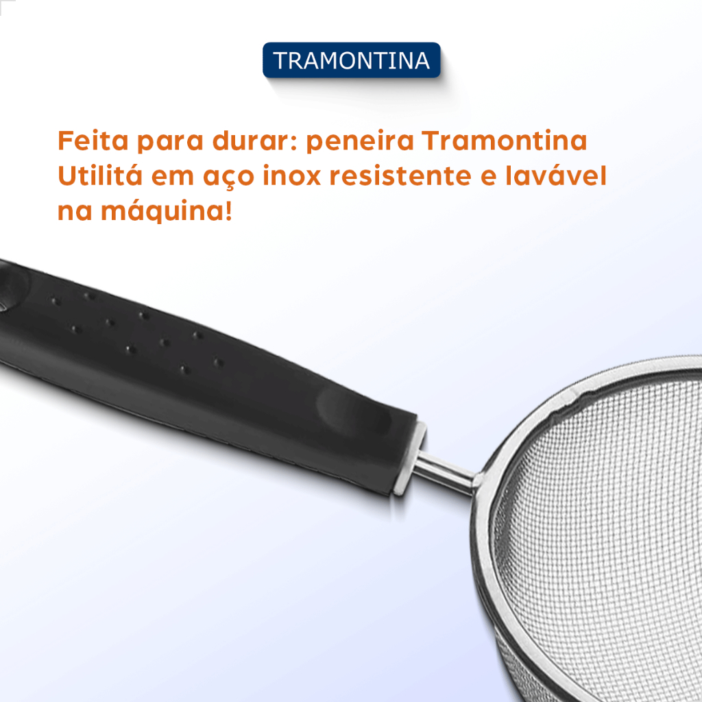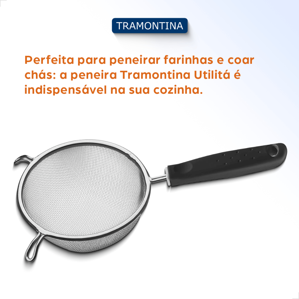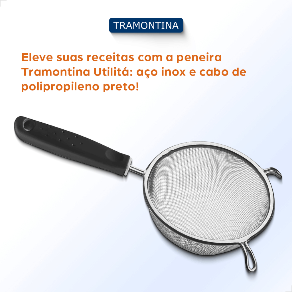 Peneira Tramontina para ovos, farinha, para suco 13CM Utilitá Lamina Aço Inox Cabo de Polipropileno