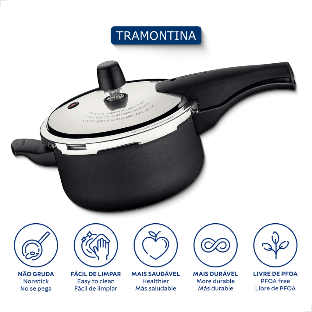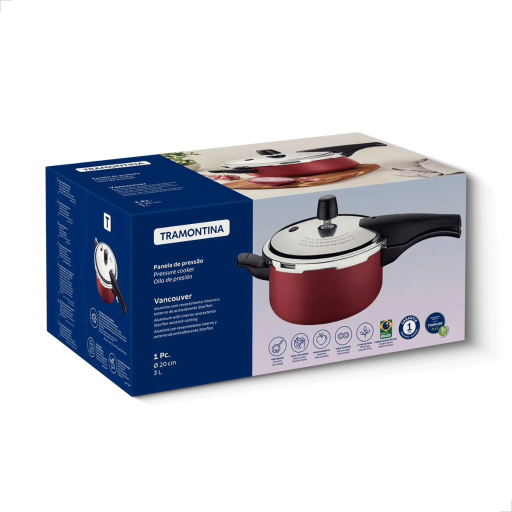 Panela de Pressao Tramontina Vancouver Antiaderente Alumínio Starflon Max 20cm 3L Fechamento Externo