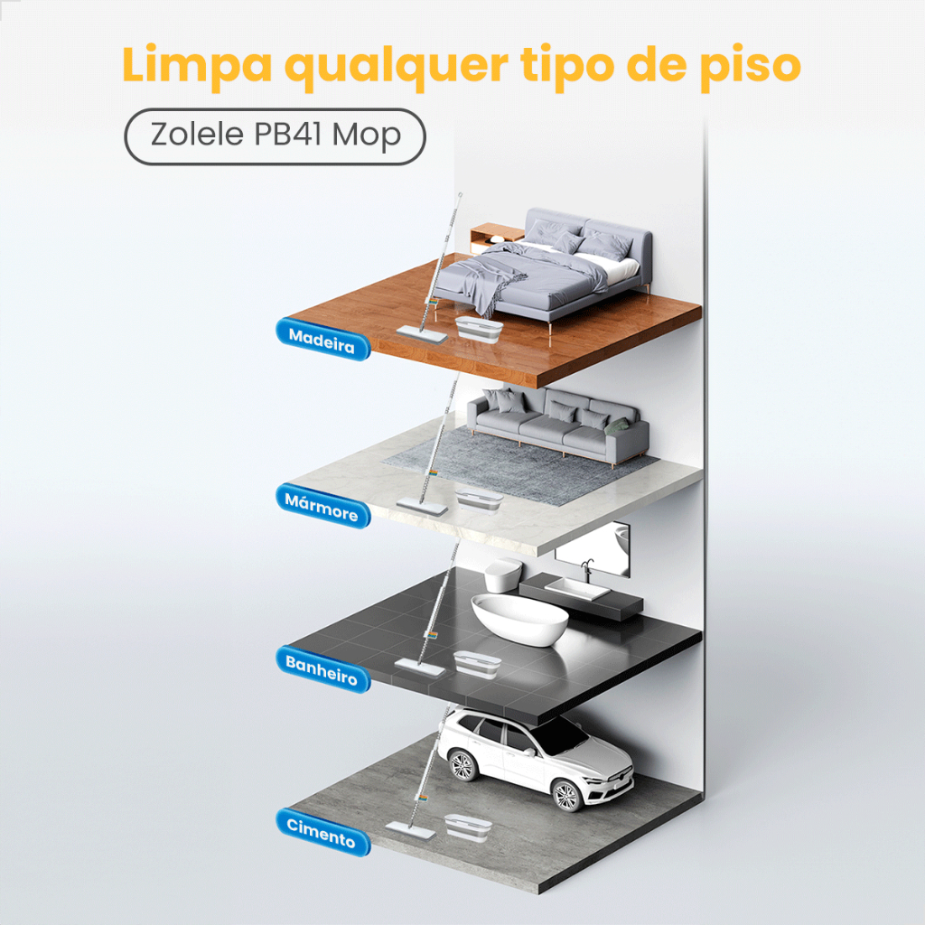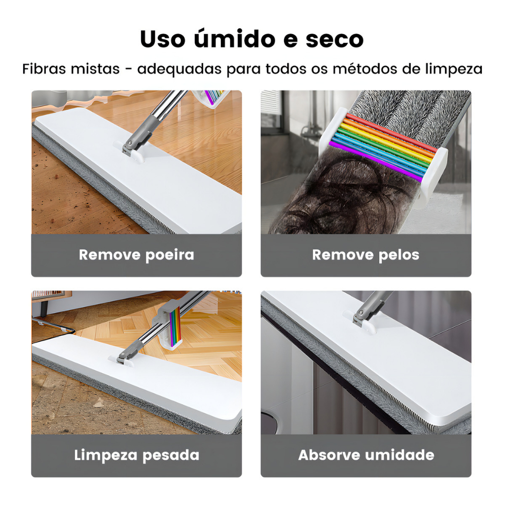 Esfregao Mop ZOLELE Microfibra Com Rotacao Automatica 360° 7 Raspadores Para Areas Umidas e Secas