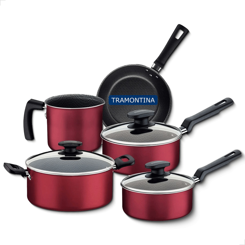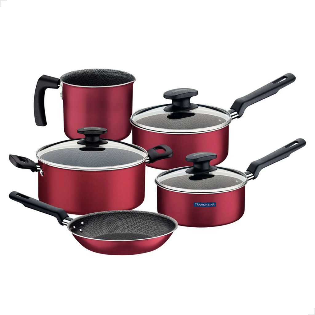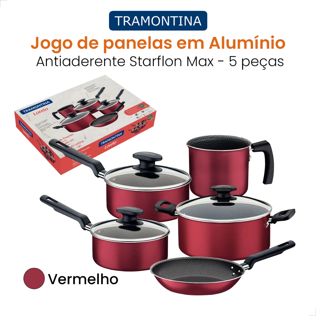 Conjunto de Jogo de Panelas Tramontina 5 Peças Loreto de Alumínio Starflon Max Antiaderente Vermelha