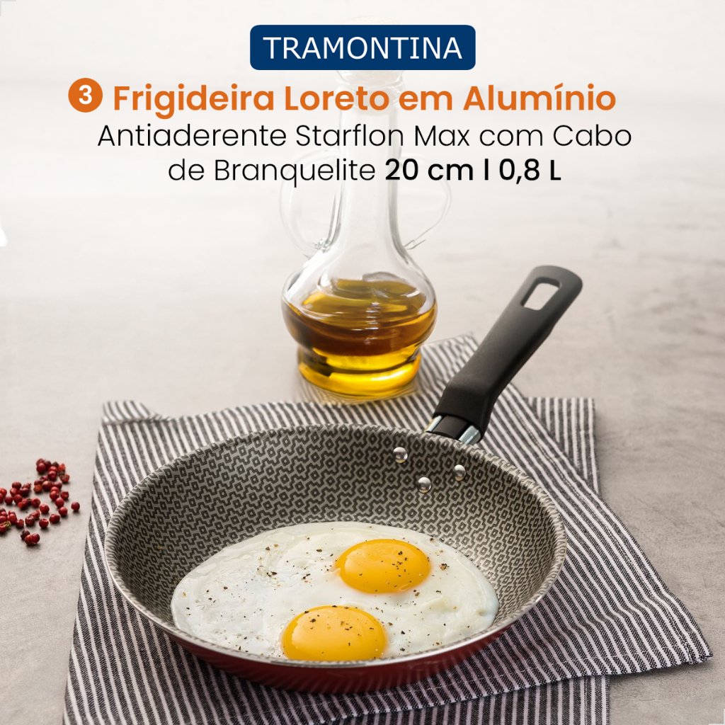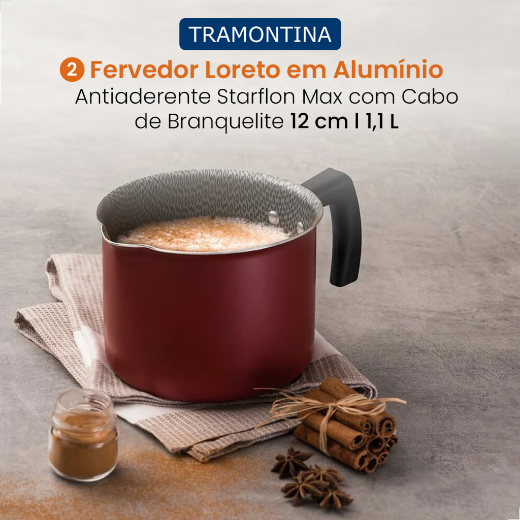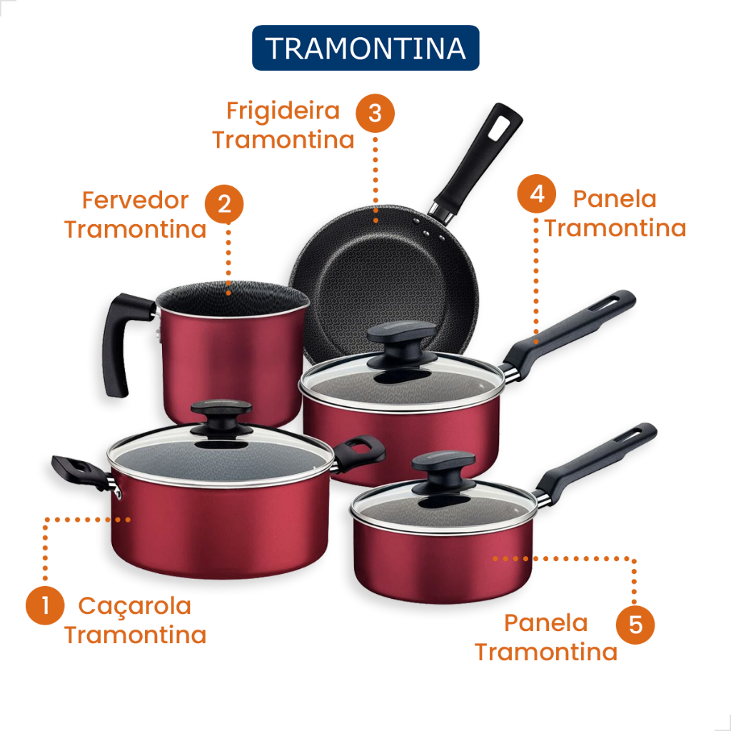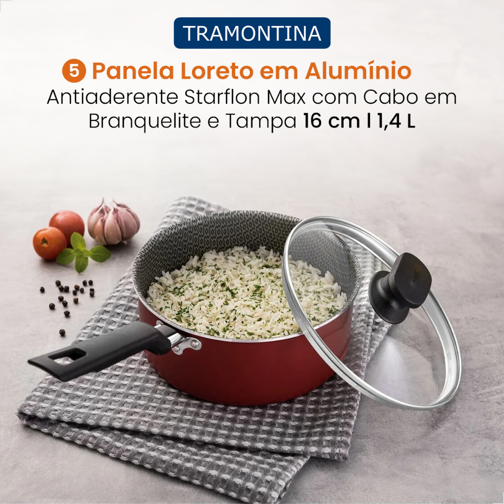 Conjunto de Jogo de Panelas Tramontina 5 Peças Loreto de Alumínio Starflon Max Antiaderente Vermelha