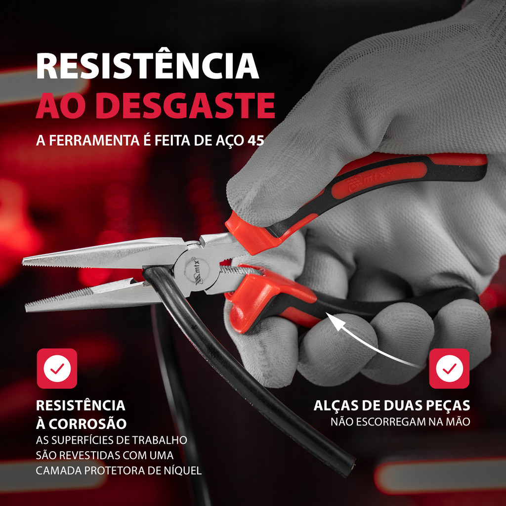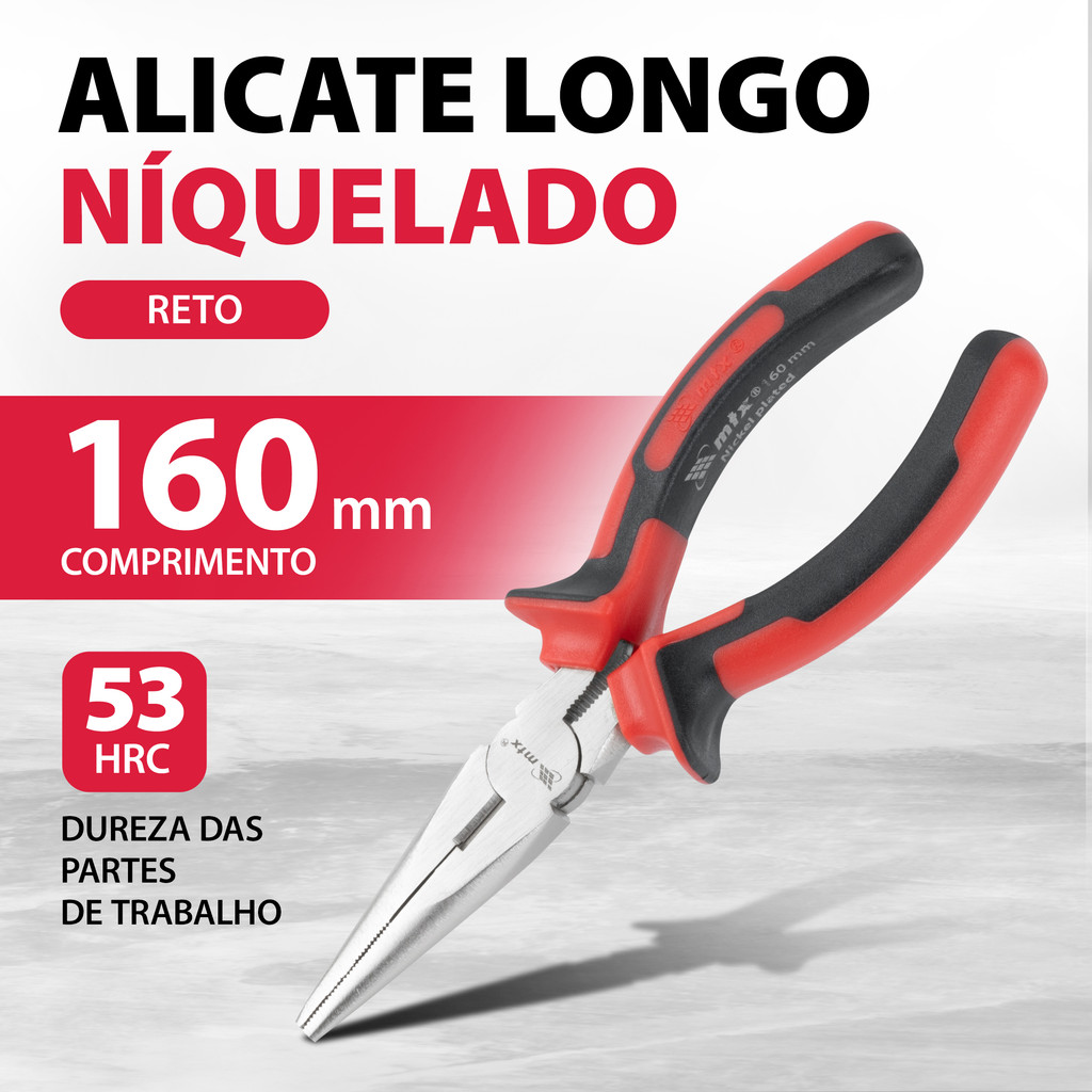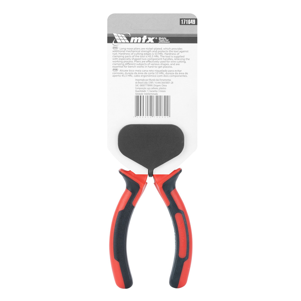 ALICATE BICO MEIA CANA RETO, NICKEL, NIQUELADO, CABO DUPLA INJECAO, 6POL.-160MM, 1PC // MTX