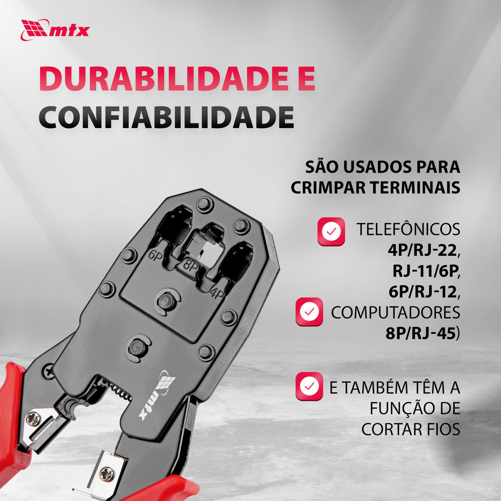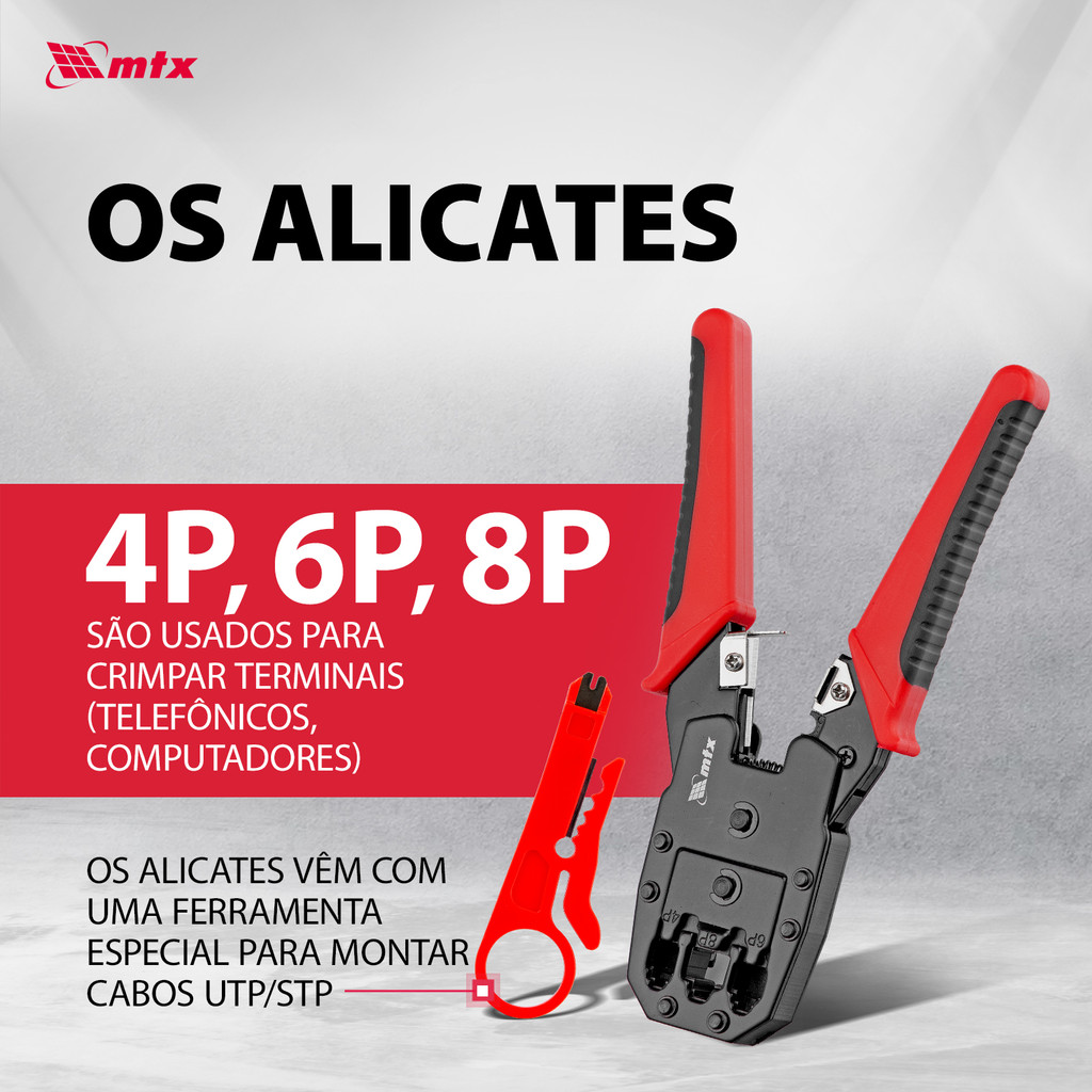 ALICATE CRIMPRADOR DE CABOS PARA TERMINAIS 4P, 6P, 8P, 1PC // MTX
