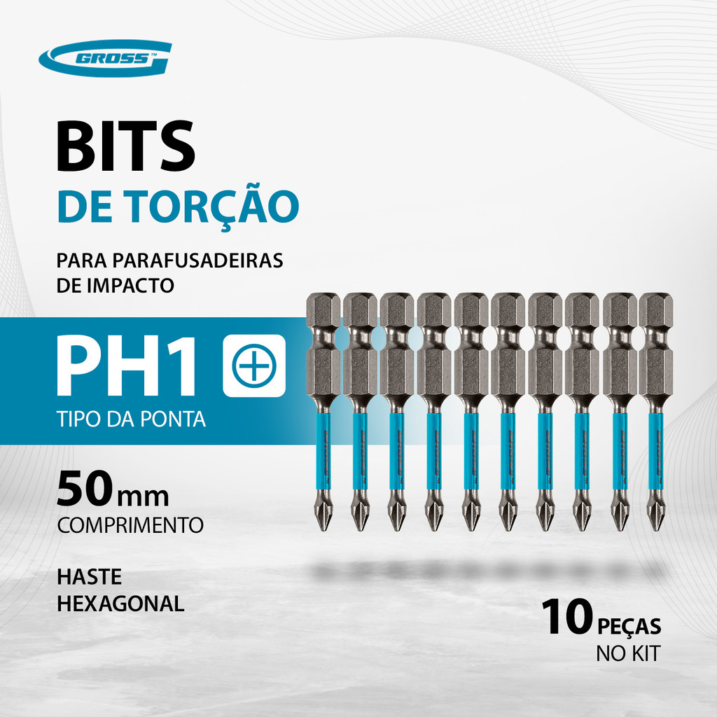 BITS TORCAO PH1, PARA FERRAMENTAS DE IMPACTO, ACO CROMO MOLIBDENIO, 50MM, 10PCS // GROSS