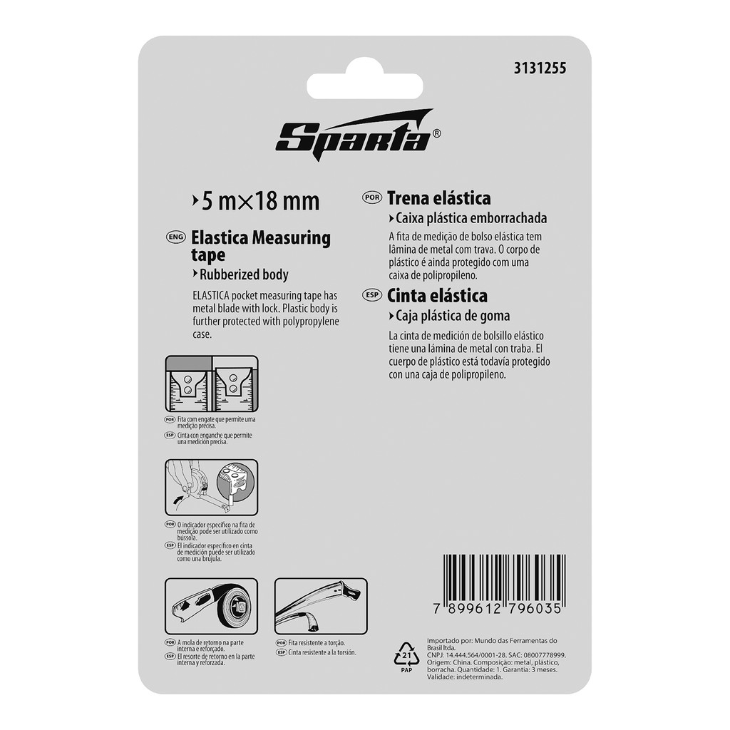 TRENA CURTA 5 M, 18MM, ESTOJO EMBORRACHADO, 1 PC // SPARTA