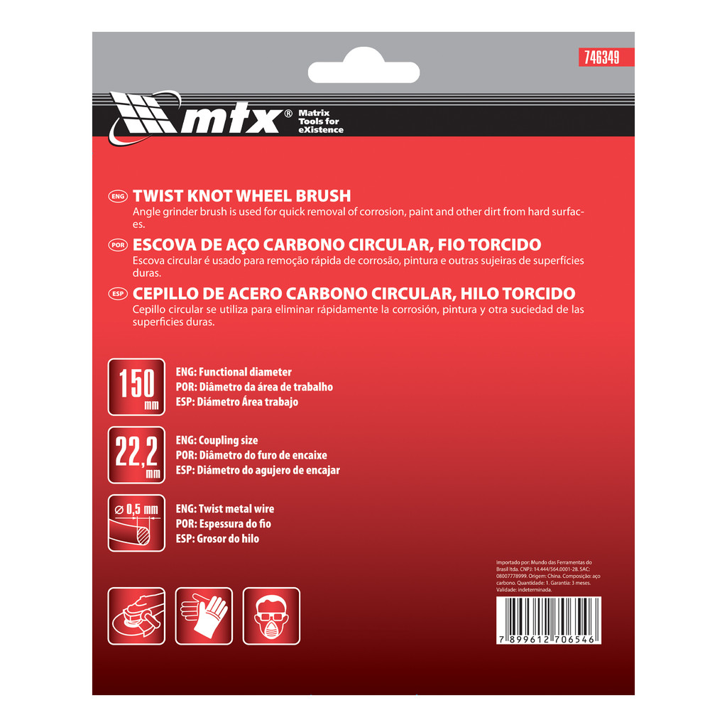 ESCOVA CIRCULAR, ACO CARBONO, TORCIDA, FURO 22,2 MM, 150MM, 1PC // MTX