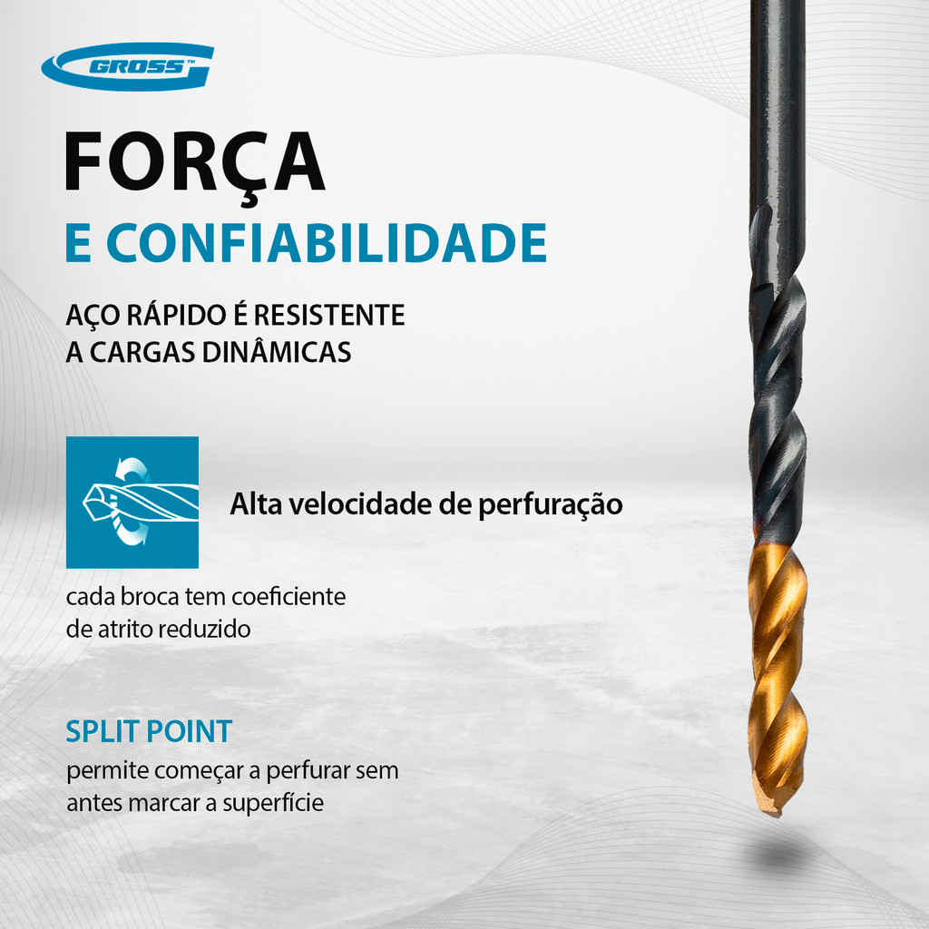 BROCA ACO RAPIDO PROFISSIONAL, NITRETO DE TITANIO, PARA METAL, 2,5MM, 10PCS // GROSS
