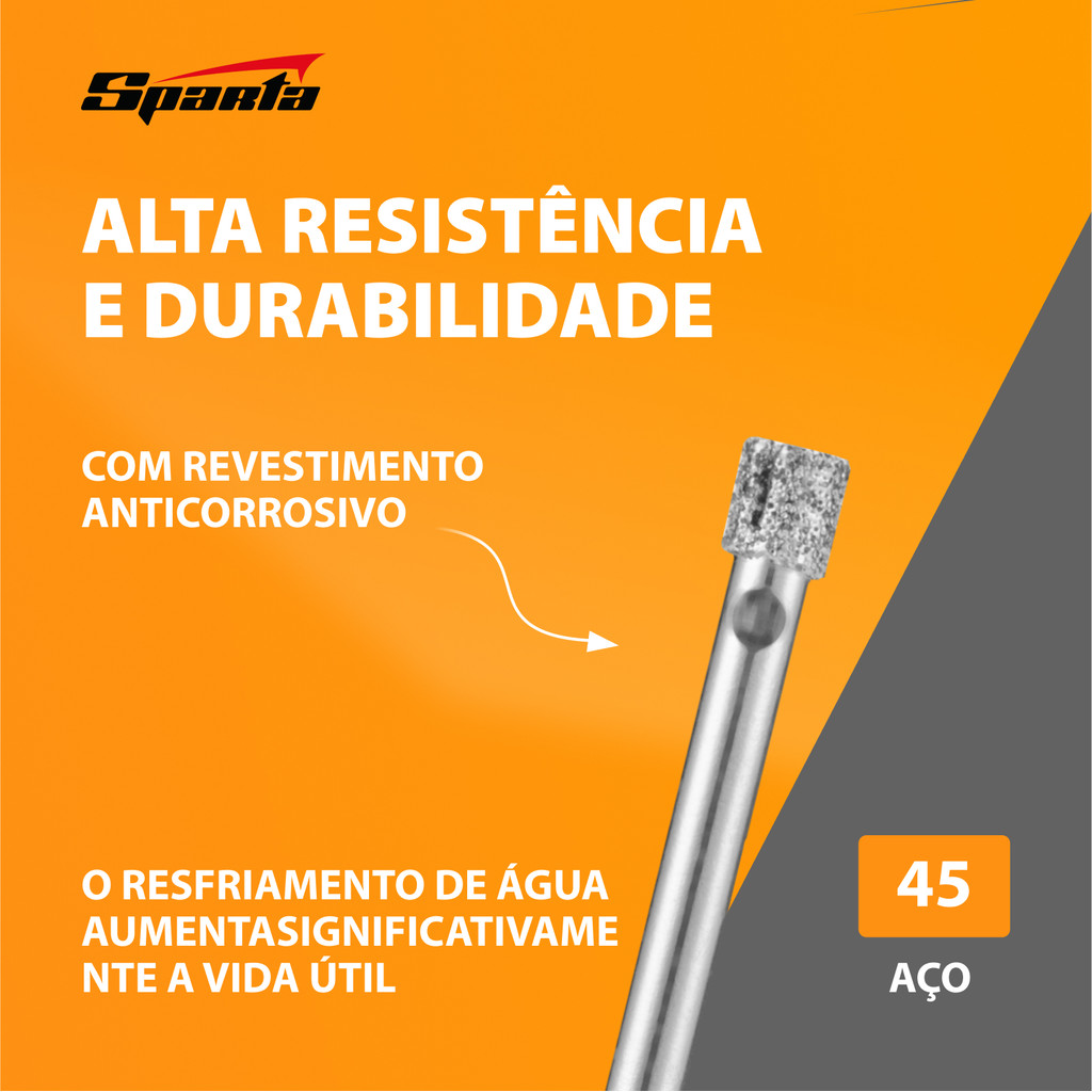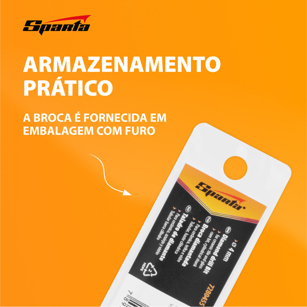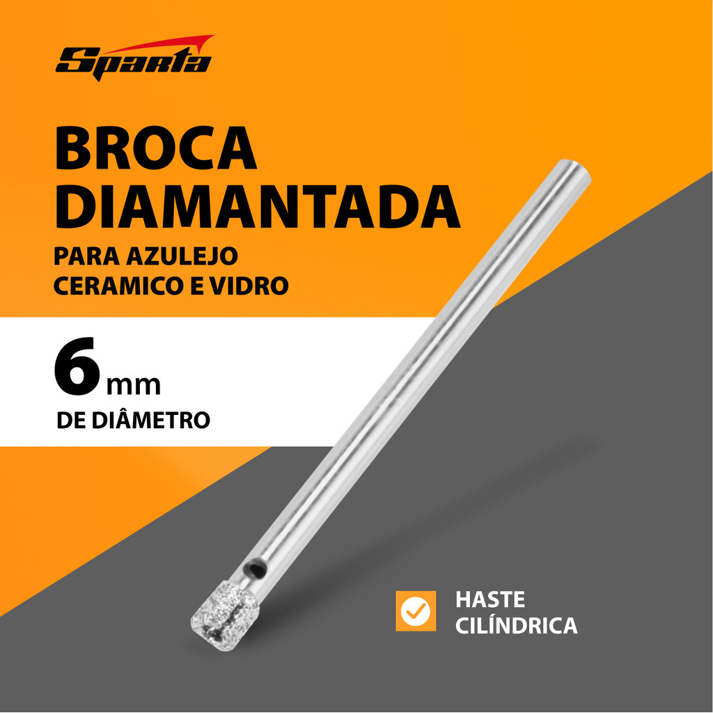 BROCA DIAMANTADA PARA CERAMICA E VIDRO, 6MM, HASTE CILINDRICA, 1PC // SPARTA
