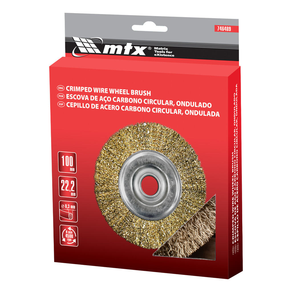 ESCOVA CIRCULAR, LATONADA, ONDULADA, FURO 22,2 MM, 100MM, 1PC // MTX