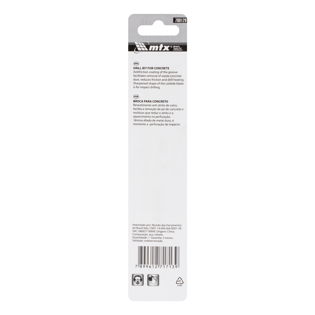 BROCA PARA CONCRETO, 12 X 150MM, HASTE CILINDRICA, GOLDEN LINE, 1PC // MTX