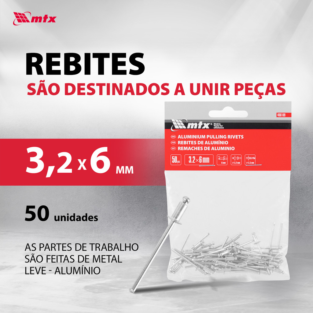 REBITES DE REPUXO, 3,2 X 6MM, 50 PCS // MTX