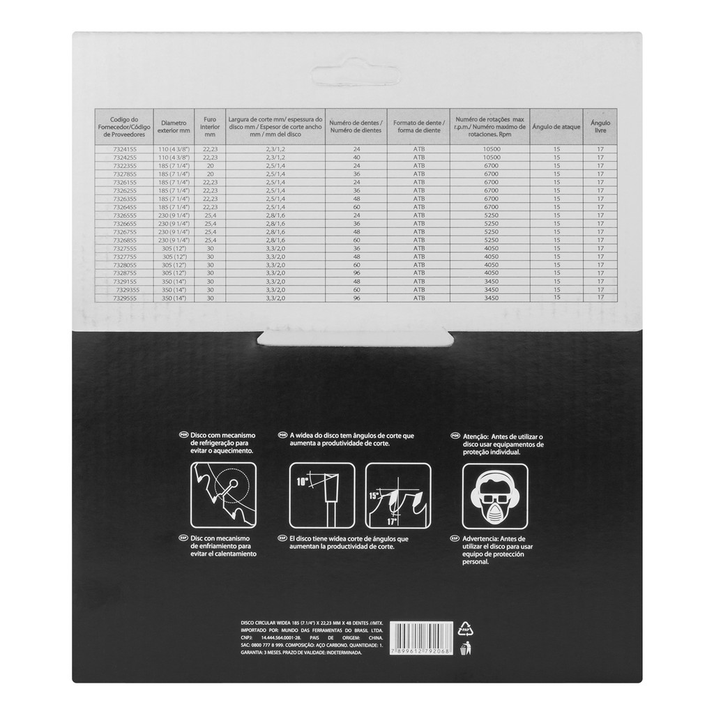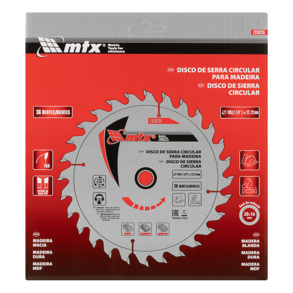 DISCO SERRA CIRCULAR PARA MADEIRA, 185MM (7,1/4POL.) X 22,23MM, 36 DENTES, 1PC // MTX