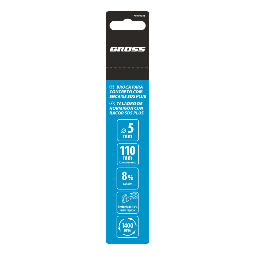 BROCA PARA CONCRETO, PONTA TUNGSTENIO E COBALTO, 5 X 110MM, ENCAIXE SDS PLUS, 1PC // GROSS