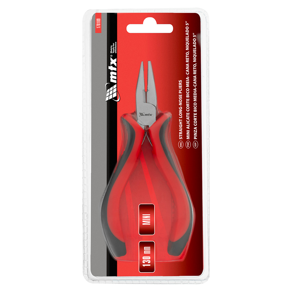 MINI ALICATE BICO MEIA CANA RETO, NIQUELADO, CABO DUPLA INJECAO, 5POL., 130MM, 1PC // MTX
