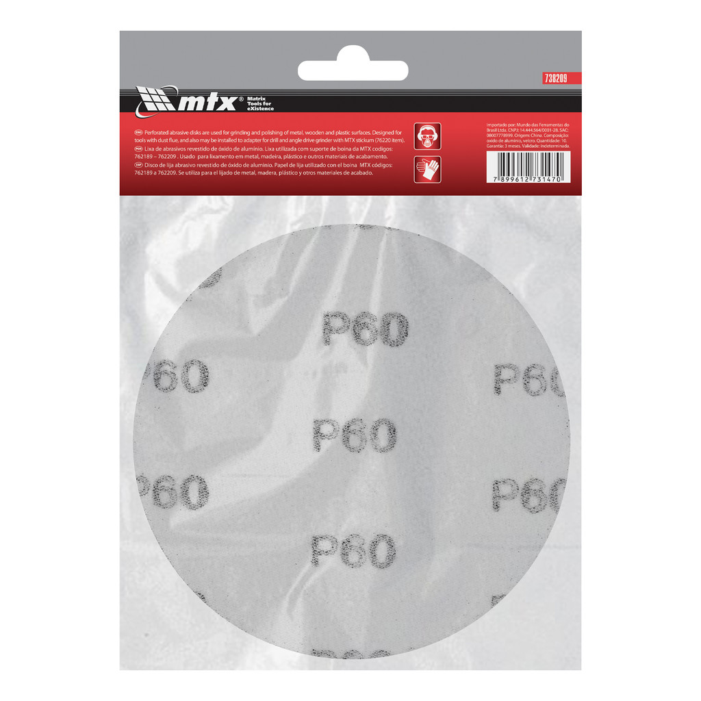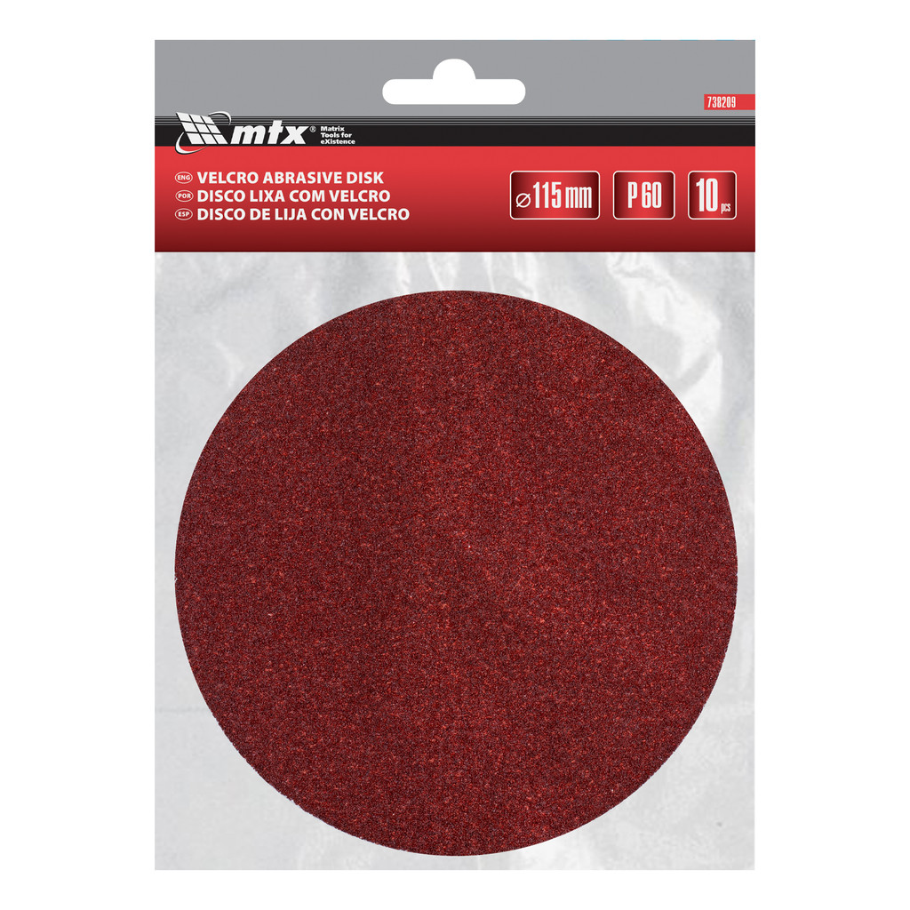 DISCO DE LIXA COM VELCRO, GRAO 60, 115MM, 10PCS // MTX