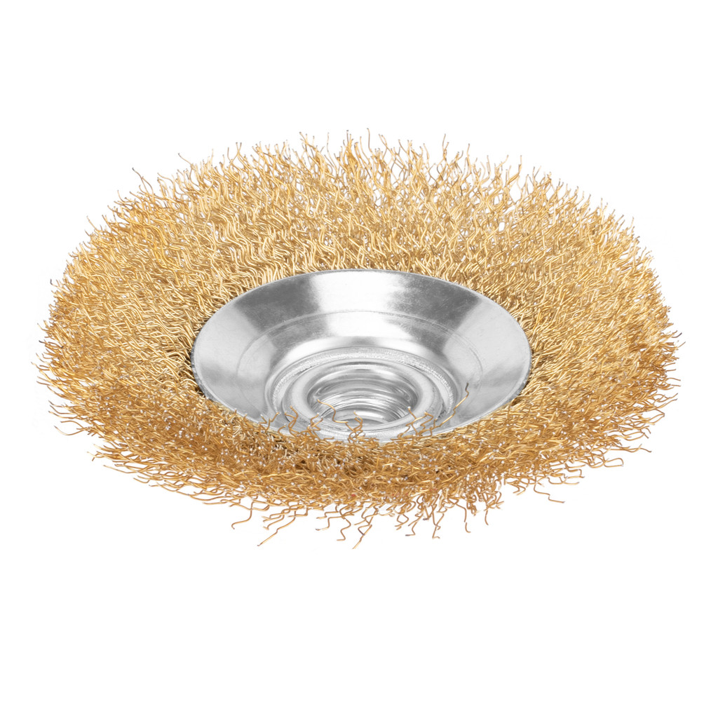 ESCOVA CIRCULAR ONDULADA, ACO CARBONO LATONADO, ROSCA M14, 100MM, 1PC//MTX