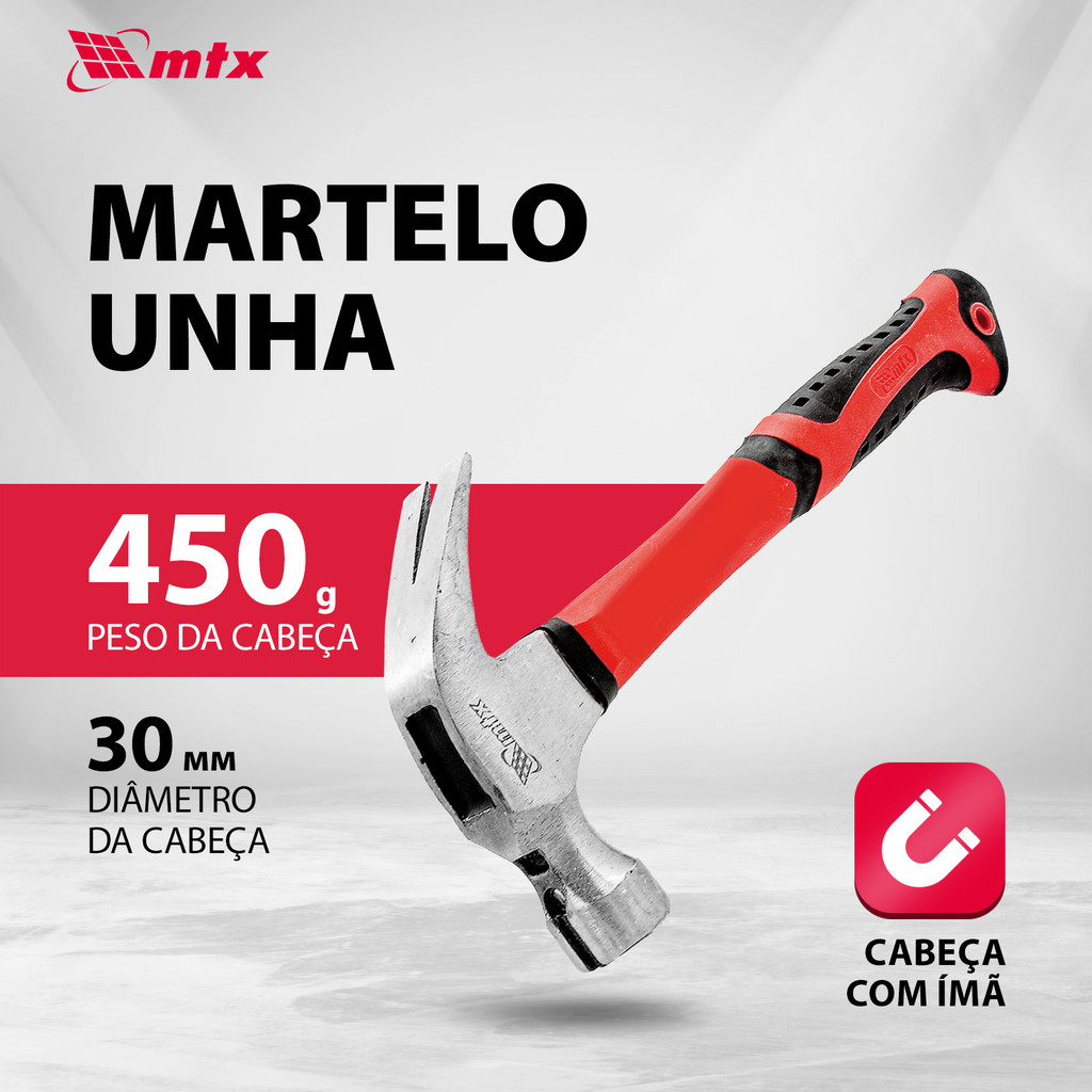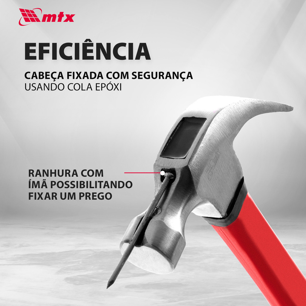 MARTELO UNHA, CABO EM FIBRA DE VIDRO EMBORRACHADO, CABECA 29MM MAGNETICA, 1PC // MTX
