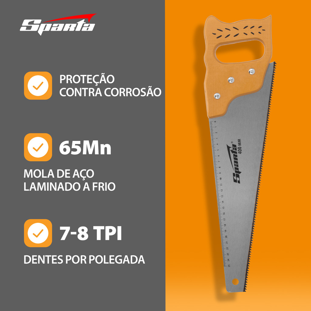 SERROTE PARA MADEIRA, DENTES TEMPERADO, CABO DE MADEIRA, 16POL., 400MM, 7-8 DPP, 1PC // SPARTA