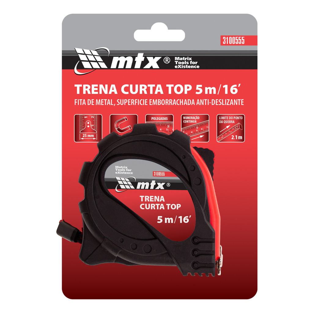 TRENA CURTA 5 M, 25MM, EMBORRACHADO, FITA DE METAL COM GANCHO MAGNETICO, 1 PC // MTX