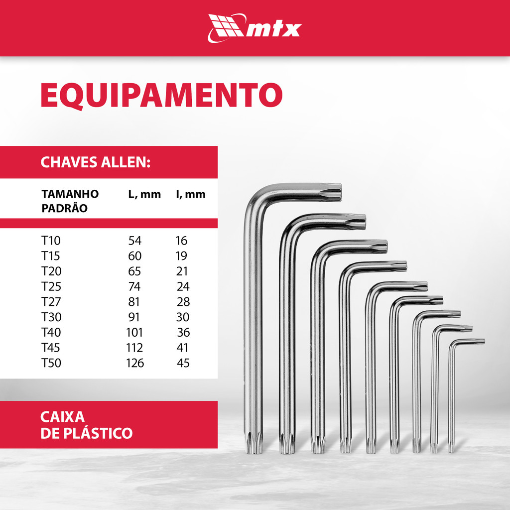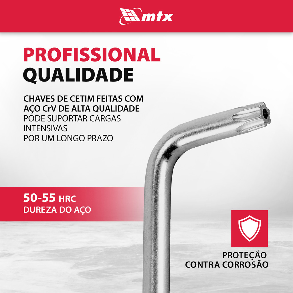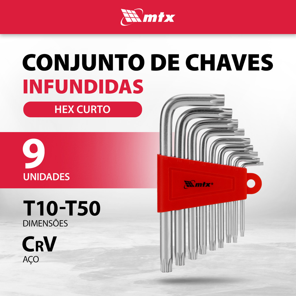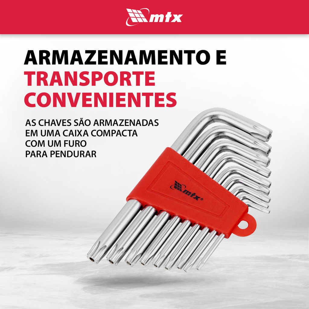 JOGO DE CHAVE TORX CURTA, ACABAMENTO ACETINADO, CROMO VANADIO, T10-T50, 9PCS // MTX