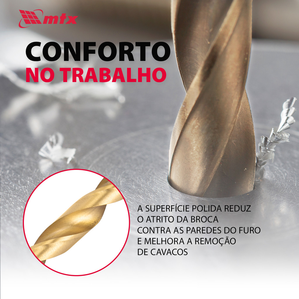 BROCA ACO RAPIDO PROFISSIONAL, NITRETO DE TITANIO, PARA METAL, 10MM, HASTE SEXTAVADA, 1PC // MTX