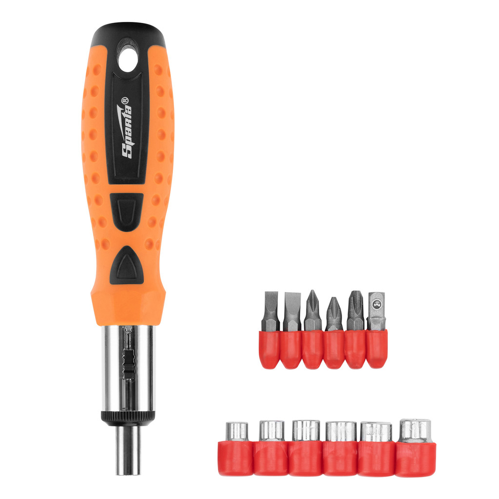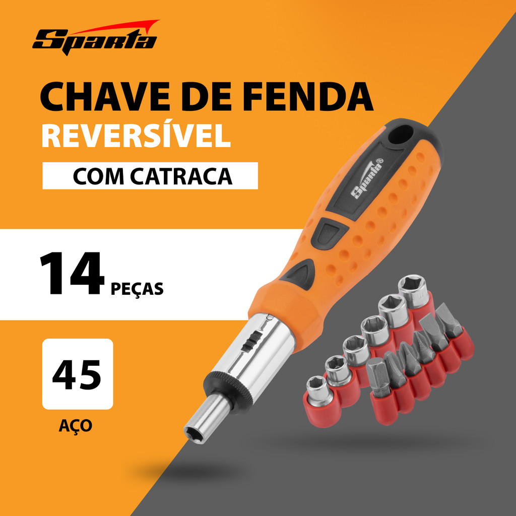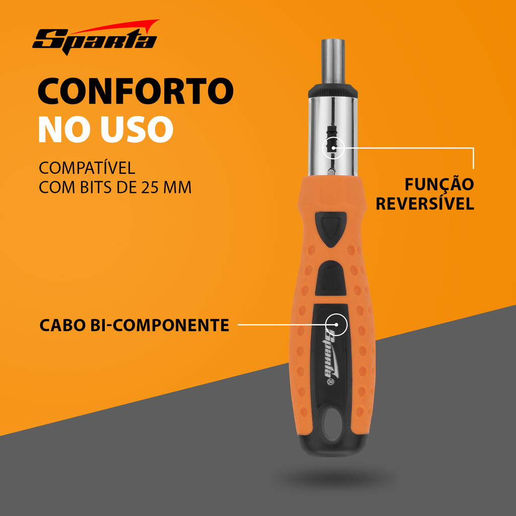 JOGO DE BITS E SOQUETES, CABO ANATOMICO REVERSIVEL COM CATRACA, 14 PCS // SPARTA