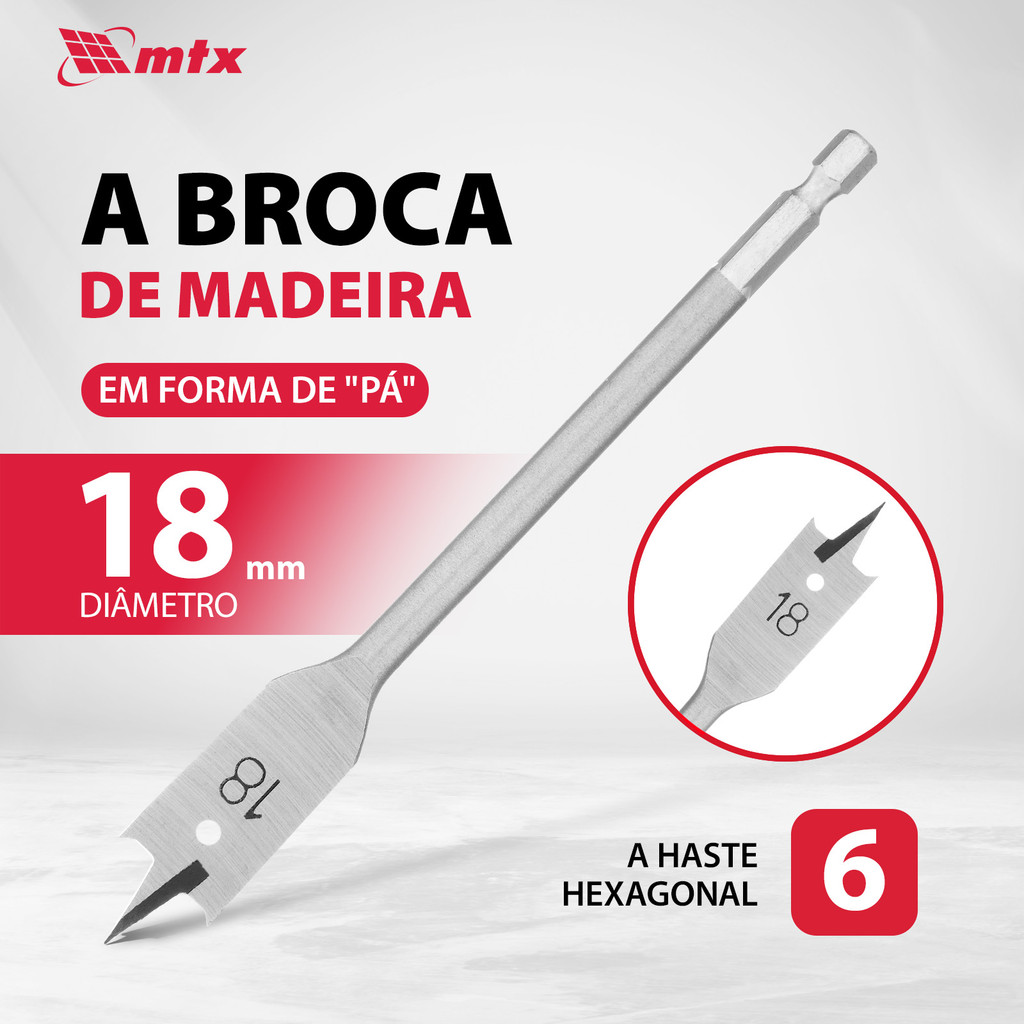BROCA CHATA PARA MADEIRA, 18 X 150 MM, HASTE SEXTAVADA, 1PC // MTX