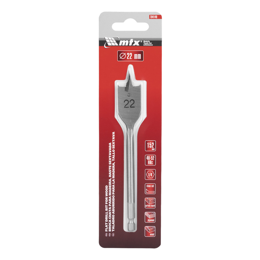 BROCA CHATA PARA MADEIRA, 22 X 150 MM, HASTE SEXTAVADA, 1PC // MTX